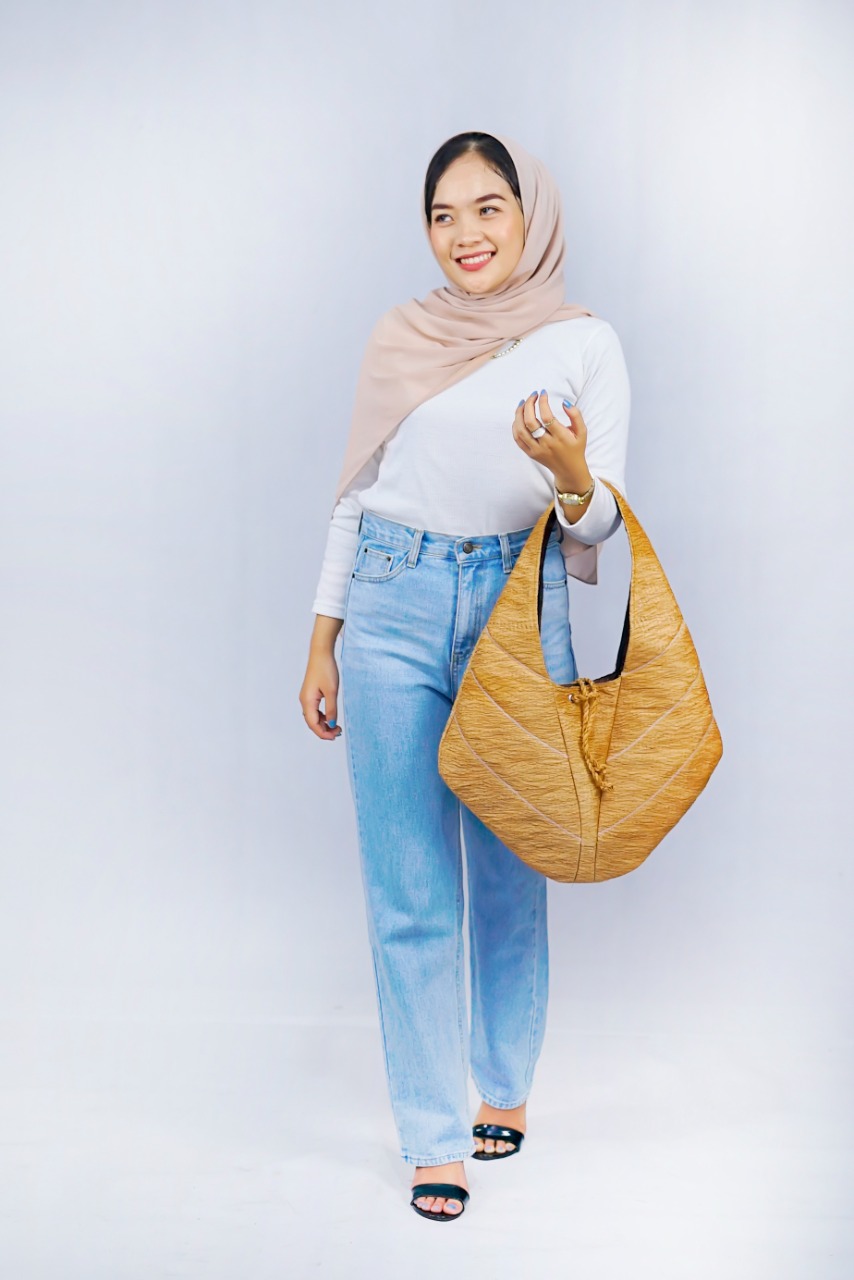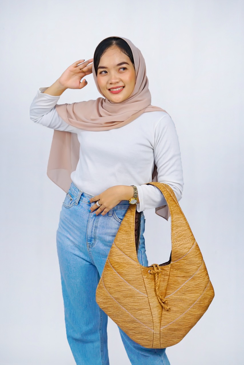 Tas Kalong Berbahan Kayu Lantung yang dibuat secara handmade dengan bentuk yang unik
