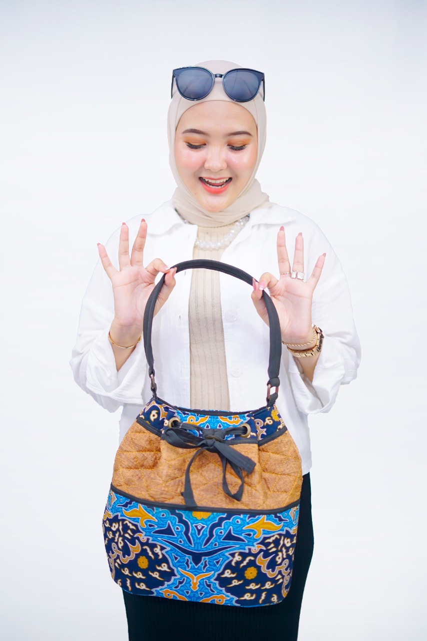 Tas Santai Kulit Kayu Kombinasi Batik Besurek