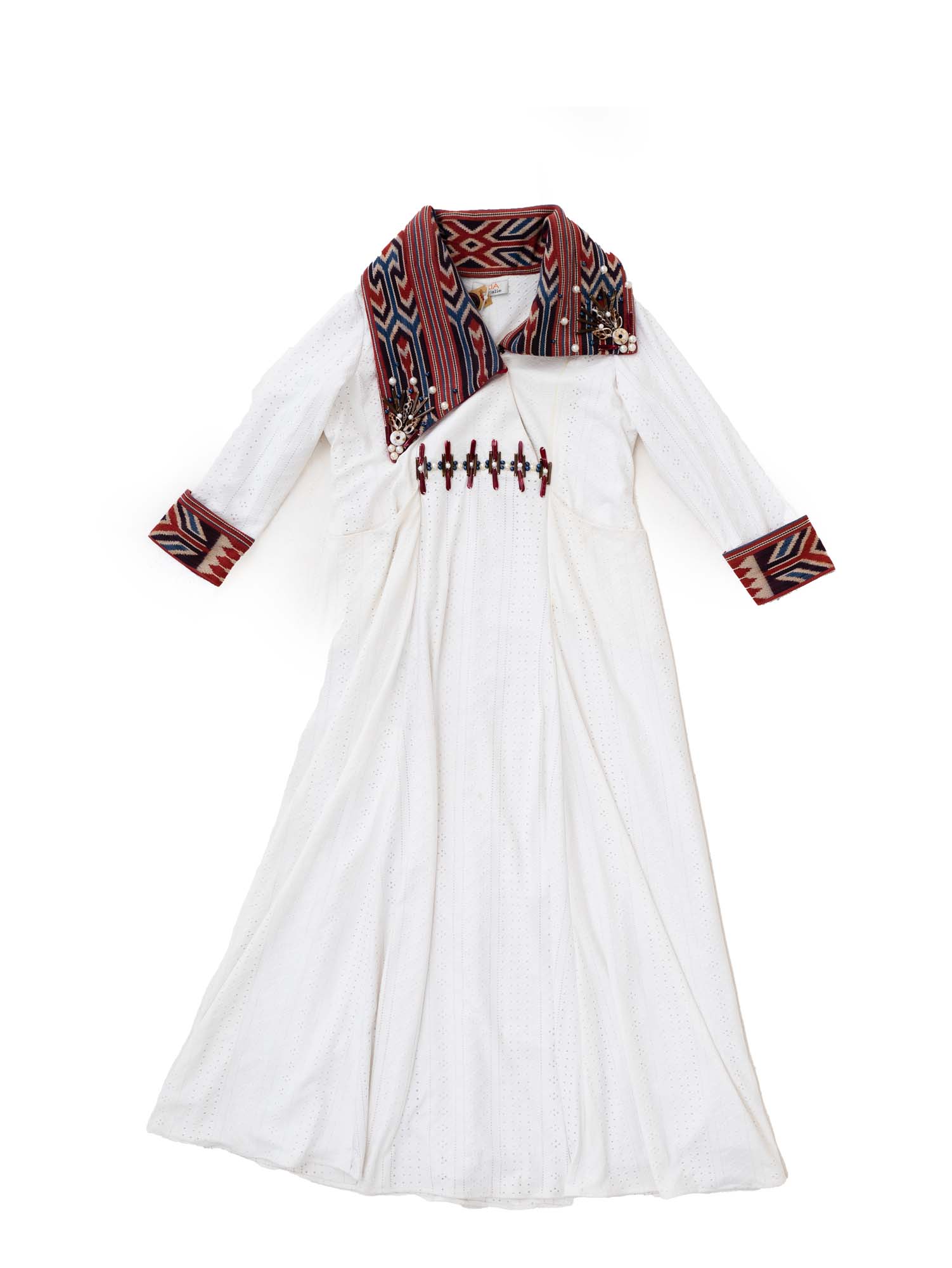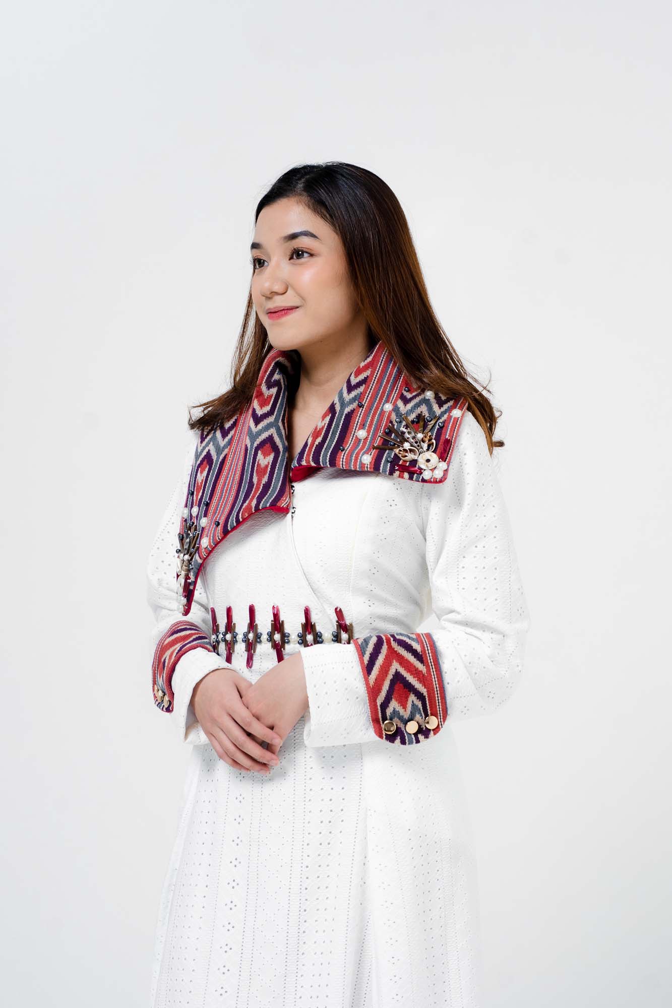 Gaun Putih Aplikasi Tenun Ikat Sekomandi Motif Ulukarua Barinni