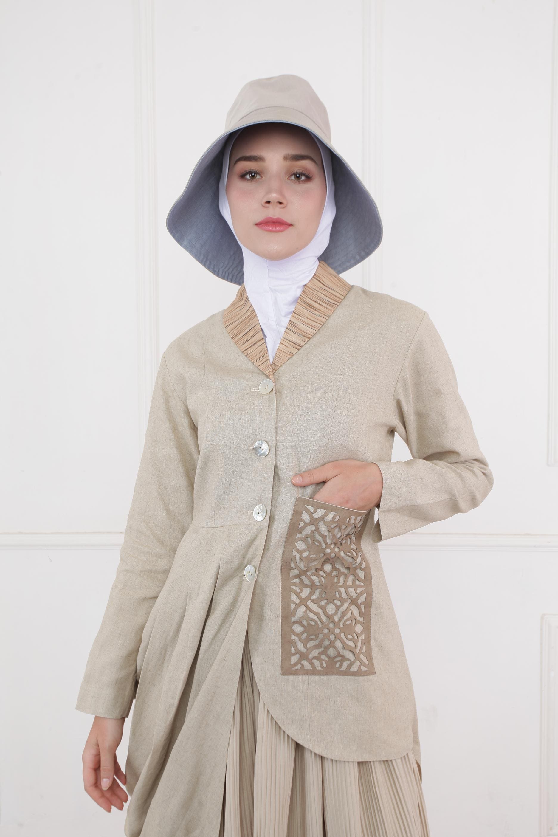 KAYO is a Local Brand from Modern Muslim fashion that is fixed national identity. The clothing collection for this brand focuses on several types of fashion such as dresses, blouses, skirts/pants, uniforms, outerwear, hijabs and accessories. The hallmark of this brand is using typical Indonesian fabrics such as batik and weaving or technique that can characterize Indonesia by using the technique lasercut. The majority of the selection of materials using natural fiber materials with earth tone color. The characteristic of deep layering is also put forward for most of the fashion model. Each collection in this brand highlight culture Indonesia.