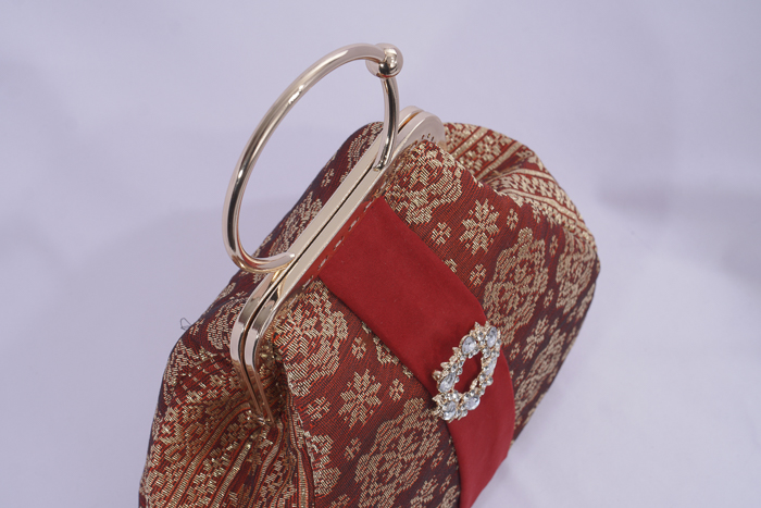 An elegant party bag crafted from genuine Palembang songket fabric, featuring a 105 cm long chain.
