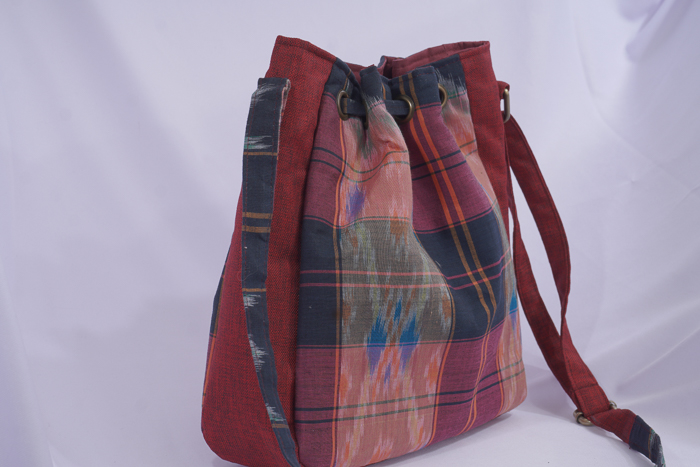Discover the charm of our drawstring bag, crafted from a unique blend of Tajung fabric and burlap canvas for a rustic yet stylish look.