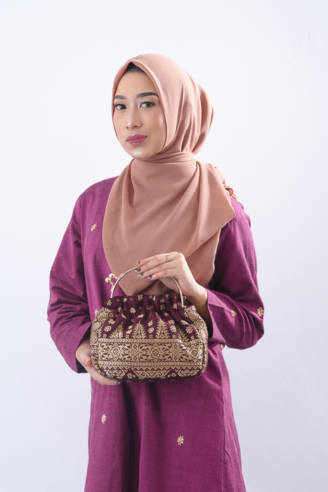 Crafted from authentic Palembang songket fabric, this exquisite piece comes with a 105cm long chain. Perfect for adding a touch of elegance to any outfit!