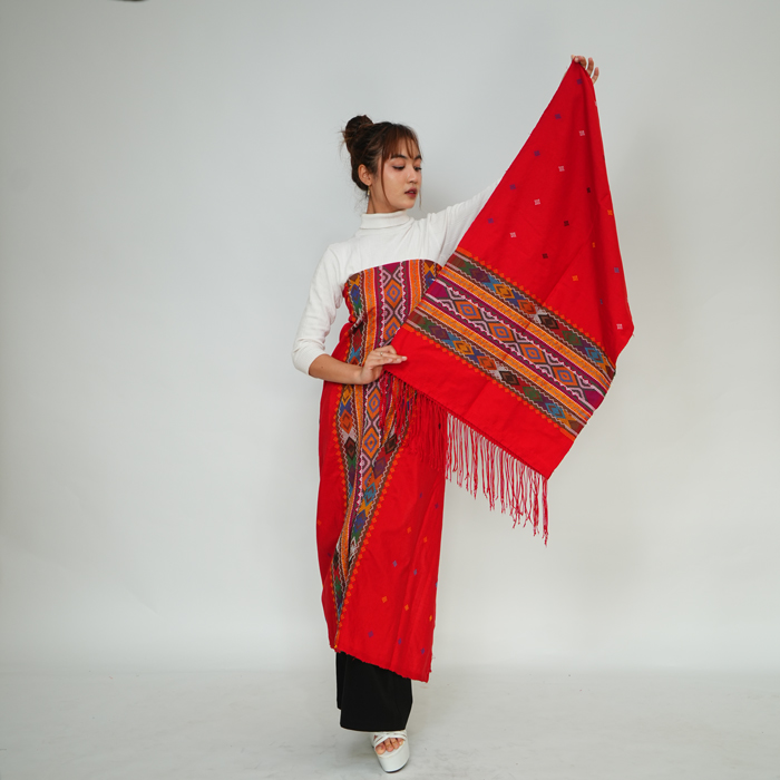 Pattern Meaning: Ciri khas ulos sadum bisa terlihat dari dominasi aksen warna merah, motif bunga yang meriah,serta bingkai warna gelap di kedua sisinya. Ulos sadum ini disimbolkan sebagai motivasi dalam suatu keluarga agar selalu bersuka cita dan bersemangat dalam menjalankan aktivitas sehari-hari.