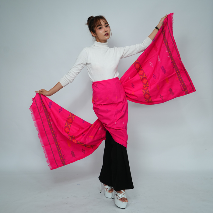 Pattern Meaning: Ciri khas ulos sadum bisa terlihat dari dominasi aksen warna merah, motif bunga yang meriah,serta bingkai warna gelap di kedua sisinya. Ulos sadum ini disimbolkan sebagai motivasi dalam suatu keluarga agar selalu bersuka cita dan bersemangat dalam menjalankan aktivitas sehari-hari.