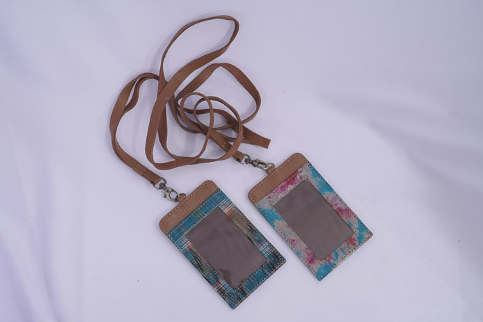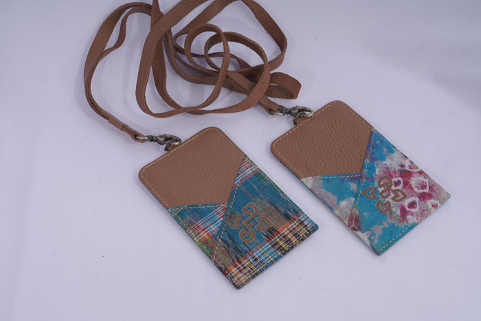 Ethnic ID card lanyard with a unique design, featuring 2 card slots on the back.