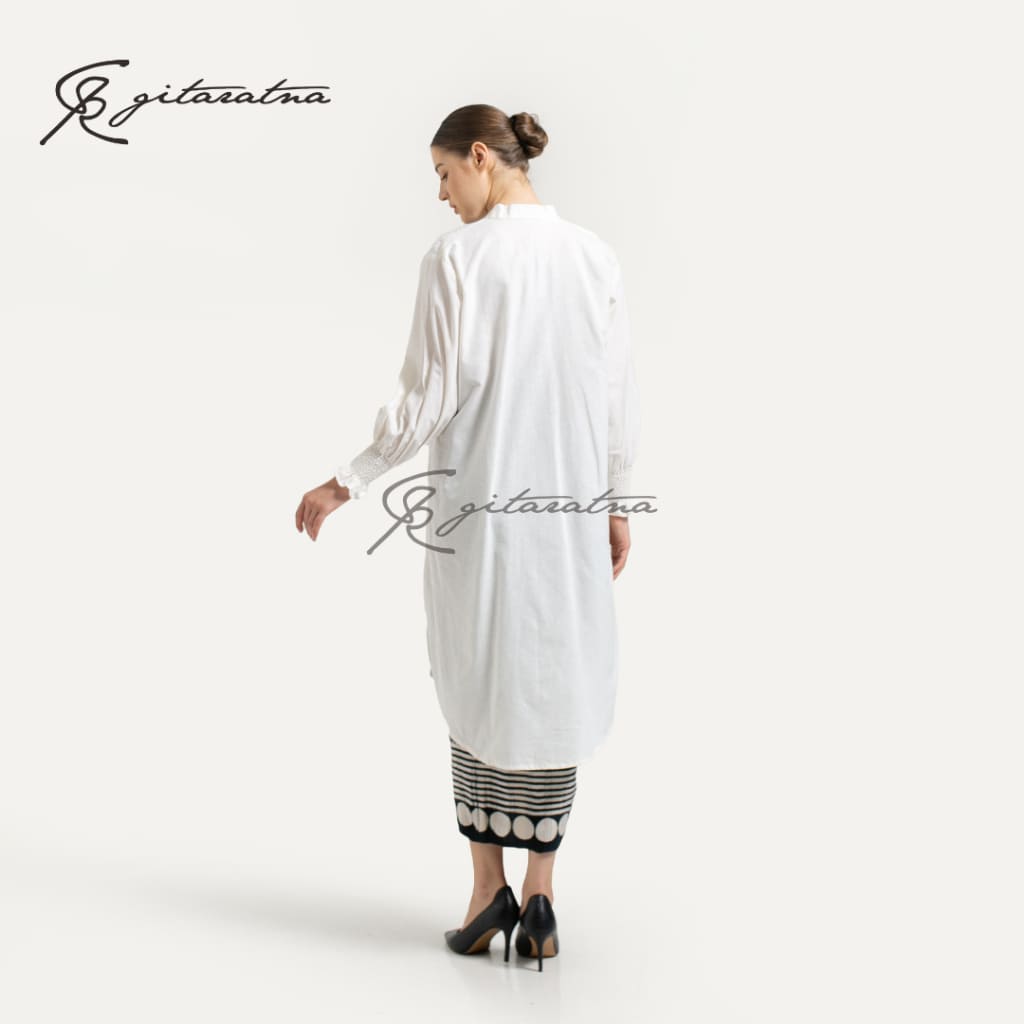 Gitaratna, committed to embrace Indonesian traditional fabric as accent details in every collection. As part of Gitaratna vision and mission, we collaborate with local craftsmen to ensure modern and high quality of Indonesian traditional fabric so we can attract young Indonesia generation to proudly wear traditional fabric (Batik or Tenun) in their daily up to formal activities. Gitaratna is a ready-to-wear women's modest fashion brand featuring traditional Indonesian fabrics as an accent and combined with other materials (non-traditional) in the form of modern, semi- formal ethnic styles with loose cutting and patterns that lead to the concept of zero waste, which minimizes unused material waste.