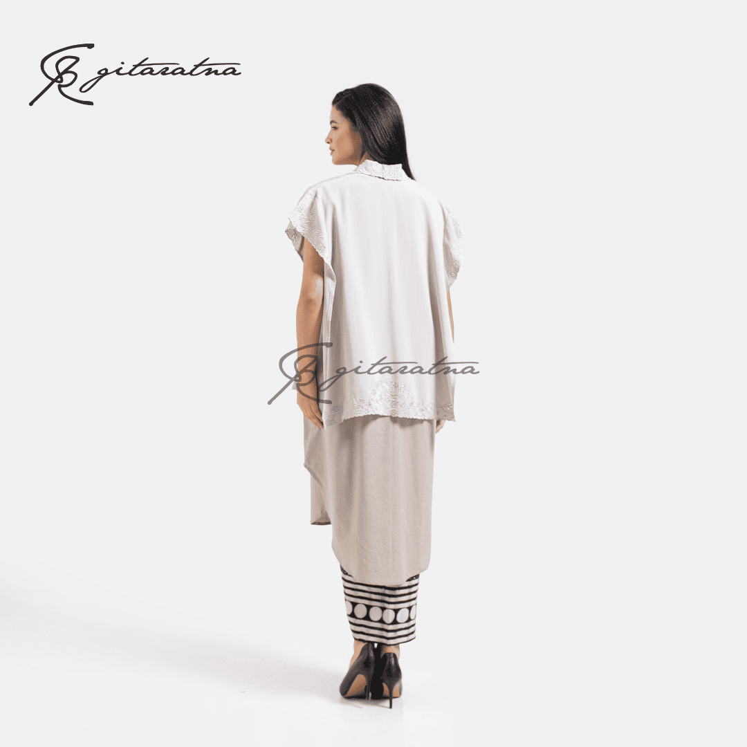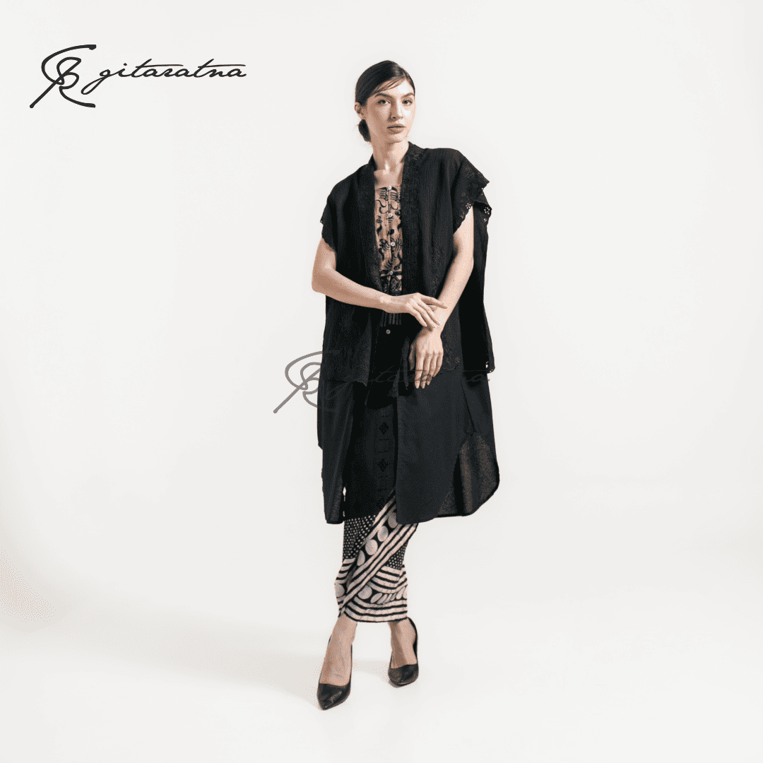 Gitaratna, committed to embrace Indonesian traditional fabric as accent details in every collection. As part of Gitaratna vision and mission, we collaborate with local craftsmen to ensure modern and high quality of Indonesian traditional fabric so we can attract young Indonesia generation to proudly wear traditional fabric (Batik or Tenun) in their daily up to formal activities. Gitaratna is a ready-to-wear women's modest fashion brand featuring traditional Indonesian fabrics as an accent and combined with other materials (non-traditional) in the form of modern, semi- formal ethnic styles with loose cutting and patterns that lead to the concept of zero waste, which minimizes unused material waste.
