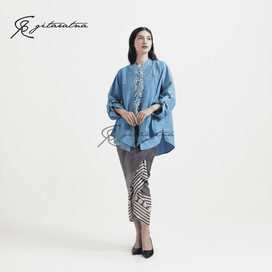 Gitaratna, committed to embrace Indonesian traditional fabric as accent details in every collection. As part of Gitaratna vision and mission, we collaborate with local craftsmen to ensure modern and high quality of Indonesian traditional fabric so we can attract young Indonesia generation to proudly wear traditional fabric (Batik or Tenun) in their daily up to formal activities. Gitaratna is a ready-to-wear women's modest fashion brand featuring traditional Indonesian fabrics as an accent and combined with other materials (non-traditional) in the form of modern, semi- formal ethnic styles with loose cutting and patterns that lead to the concept of zero waste, which minimizes unused material waste.