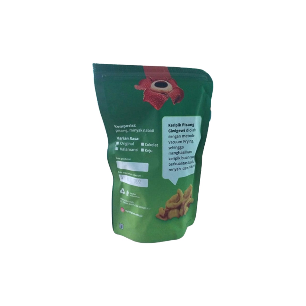 Keripik pisang GiwiGewi diolah dengan metode vacuum Frying, sehingga menghasilkan keripik buah yang berkualitas baik, renyah dan nikmat