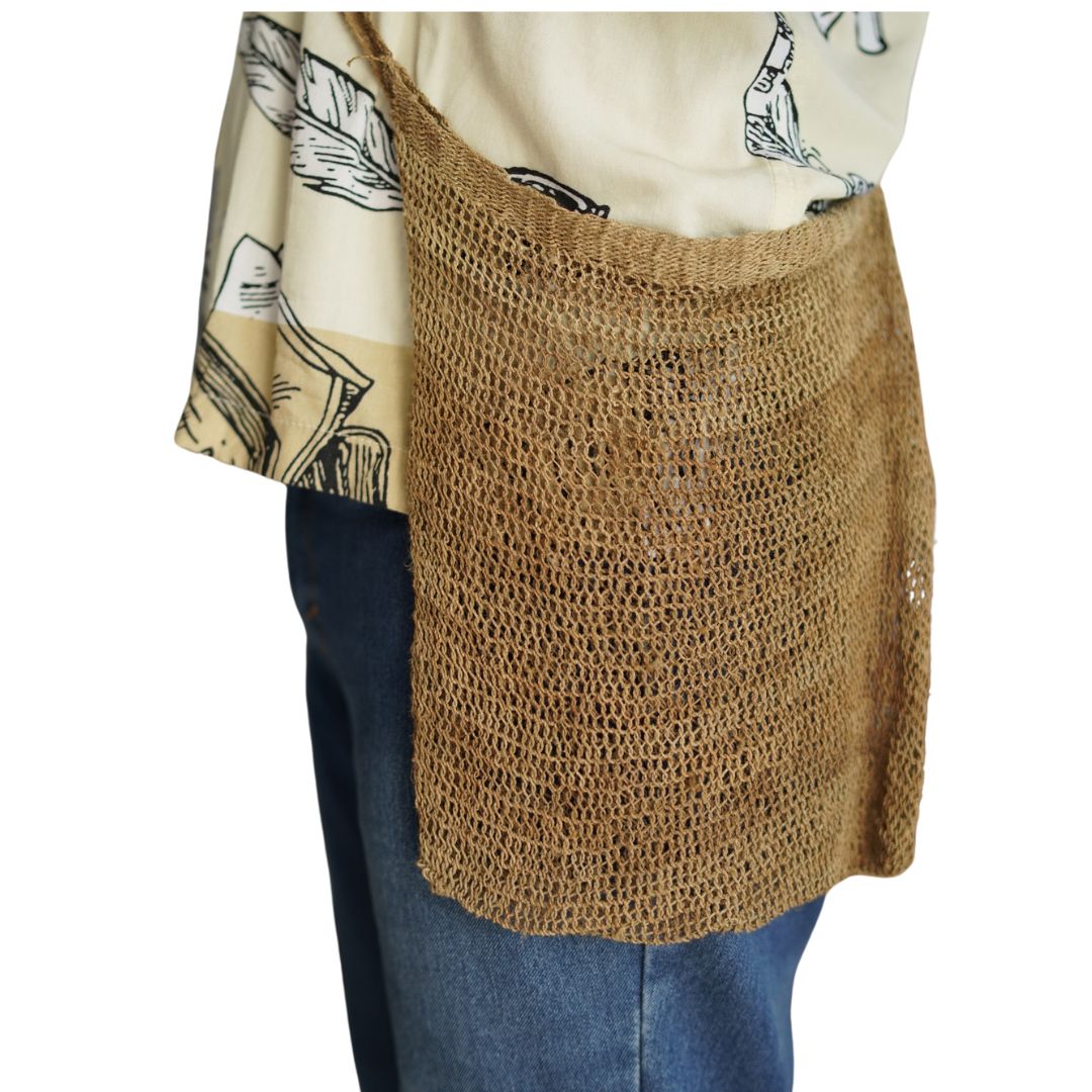 This Noken is made from tree bark. Noken from wood bark itself comes in two types, namely yellow and cream. The noken above is a brown type of noken. The bark in question is the bark of the mencau tree which is usually found in the mountains. This bark is taken from the tree and then cleaned using a knife. Then, dry it for one week to get good fiber quality. After that, the fiber is taken and spun manually with hands and feet. Then, the fibers will become thread and then woven to become a noken from bark.