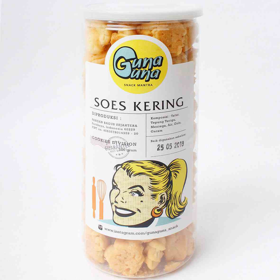 As a former Dutch colony, some elements of colonial culture were absorbed and blended with our local culture, including culinary. GUNA GUNA SNACK is a Surabaya souvenir brand that brings back the nostalgia of old-school cakes & cookies from the Dutch colonial era, enhanced with a contemporary twist in taste and packaging. This aims to make it more easily accepted by today's young generation. With catchy retro pop art branding, GUNA GUNA SNACK is an attractive choice for souvenir seekers. Enjoy our delicious Schuimpjes Coklat Mente, Semprit Keju Ovomalt, Soes Kering, Nastaria, Smoked Beef Macaroni Schotel, Spiku Nutella, Oenbijtkoek Lotus Biscoff and many more!