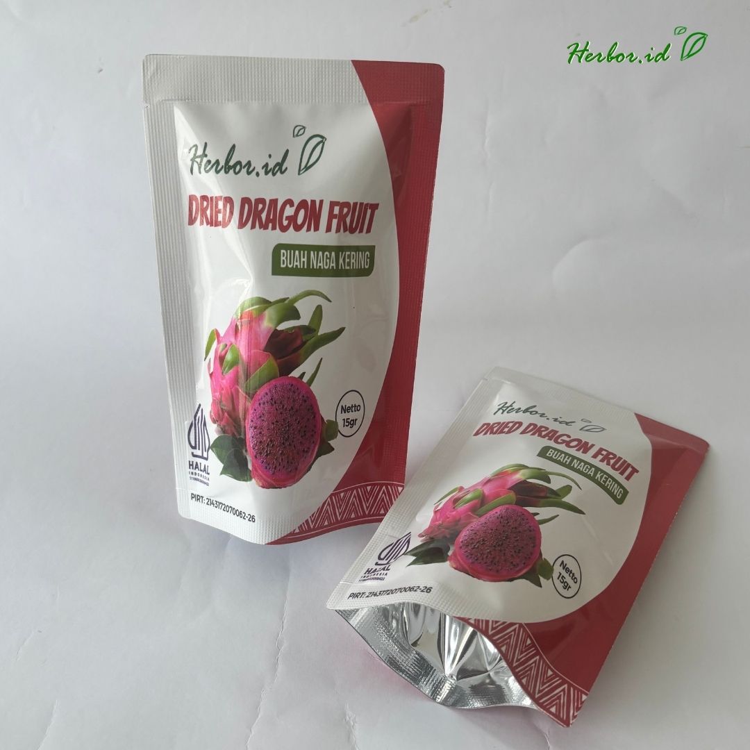 Herbor.id Dried Dragon Fruit is a healthy, all-natural snack made from 100% fresh dragon fruit with no added sugar or preservatives. Carefully dehydrated at low temperatures to preserve its flavor, color, and nutrients, it has a soft and chewy texture that makes it perfect as a ready-to-eat snack, smoothie bowl topping, or infused water mix.