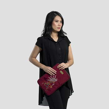 A modern laptop bag paired with the Seraong motif. Seraong itself is a wide hat typical of the Dayak tribe which is a daily protection, especially from the hot sunlight.