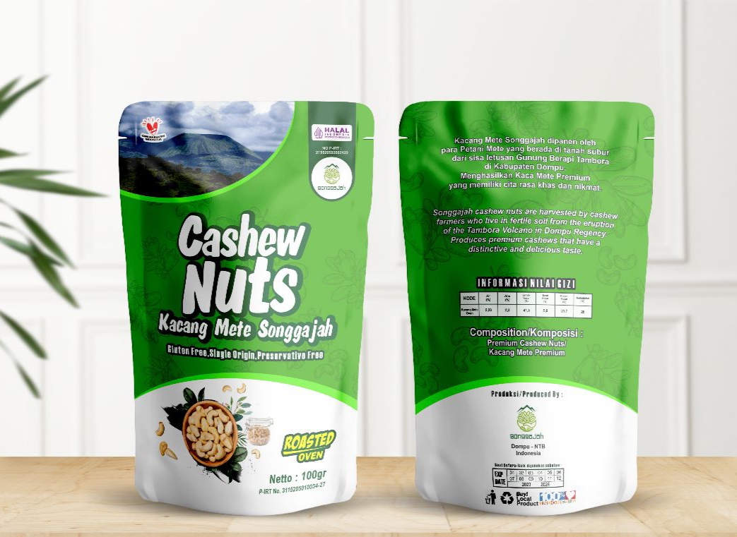 Songgajah cashew nuts are harvested by cashew farmers in the fertile soil of the remaining eruption of Mount Brapi Tambora in Dompu district, NTB. Producing premium cashew nuts that have a distinctive and delicious taste.