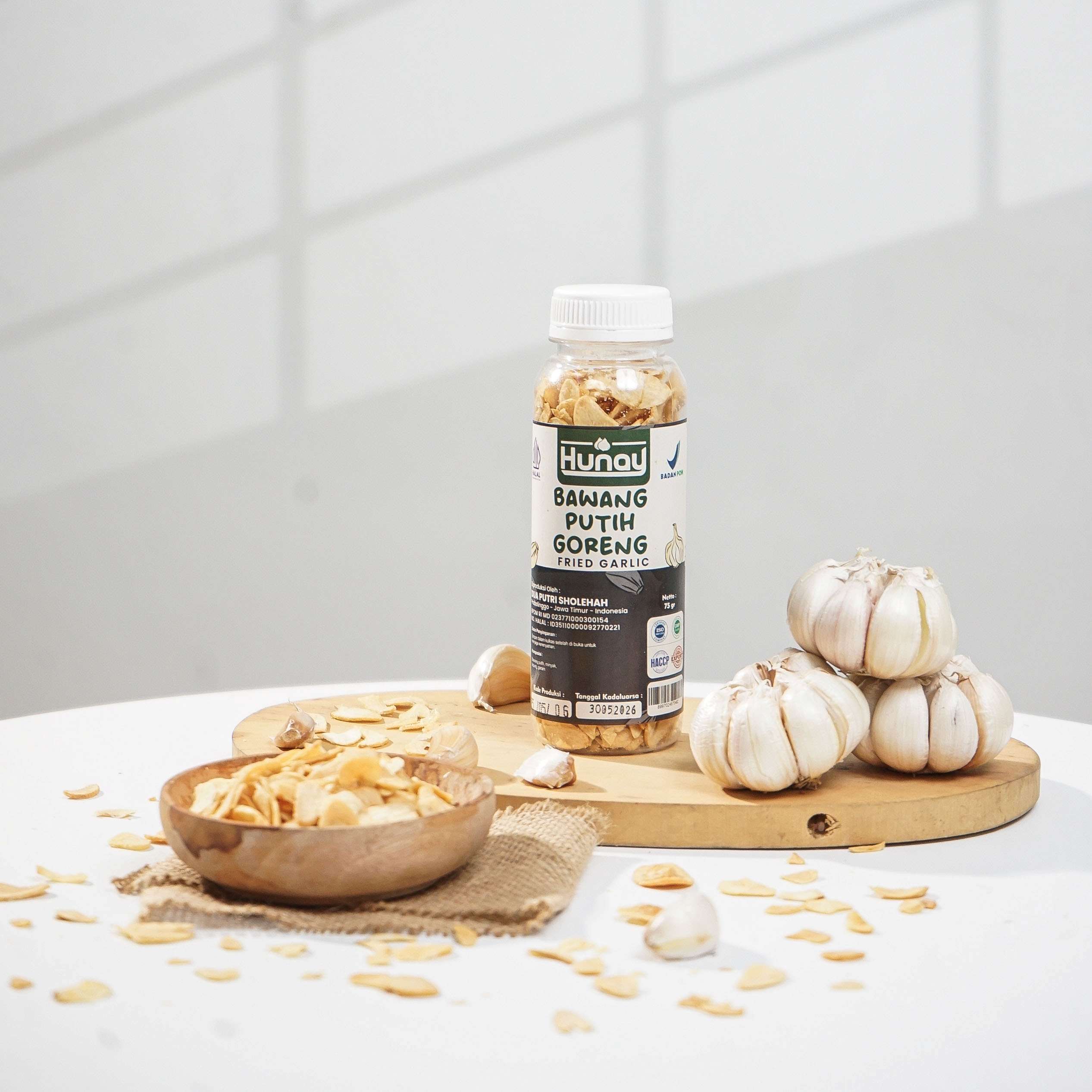 Hunay Fried Garlic is a savory and crispy snack made from premium garlic, thinly sliced and perfectly fried to bring out its bold aroma and crunchy texture. Perfect as a topping for fried rice, noodles, soups, or various dishes.