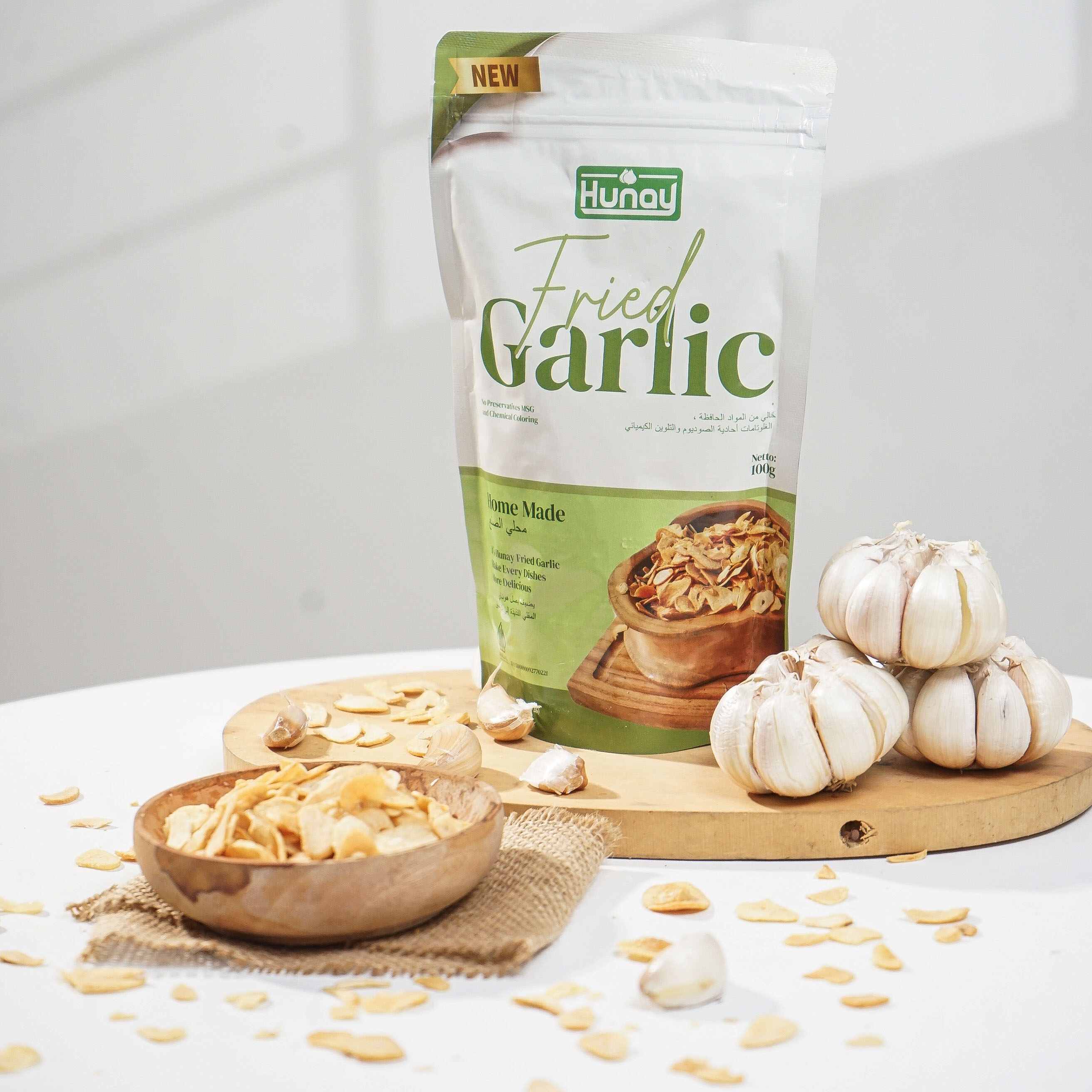 Enjoy the natural crunch and flavor of Hunay Fried Garlic in a 100g pouch. Made from real garlic, thinly sliced and fried to crisp perfection — free from preservatives and artificial coloring. Ideal as a savory topping, healthy snack, or flavorful food companion.
