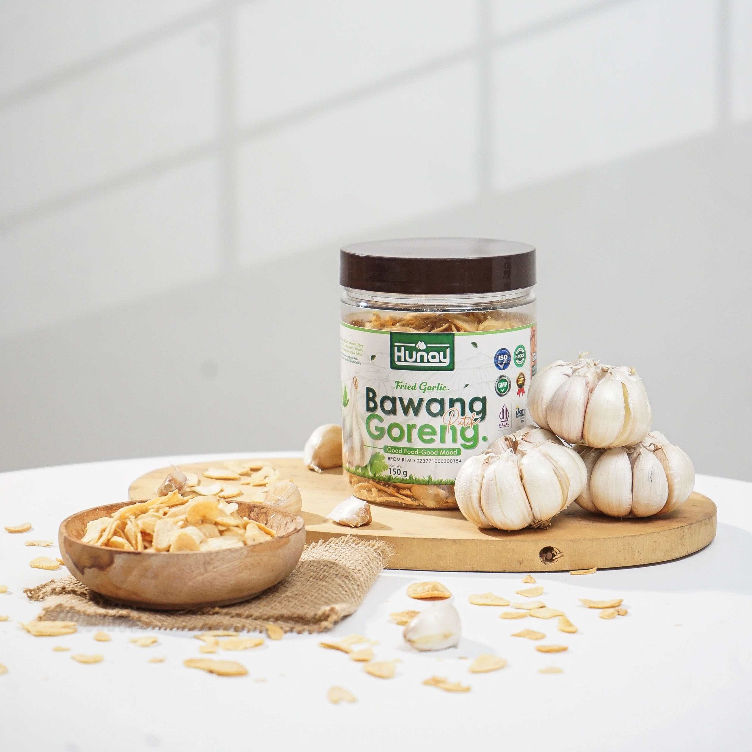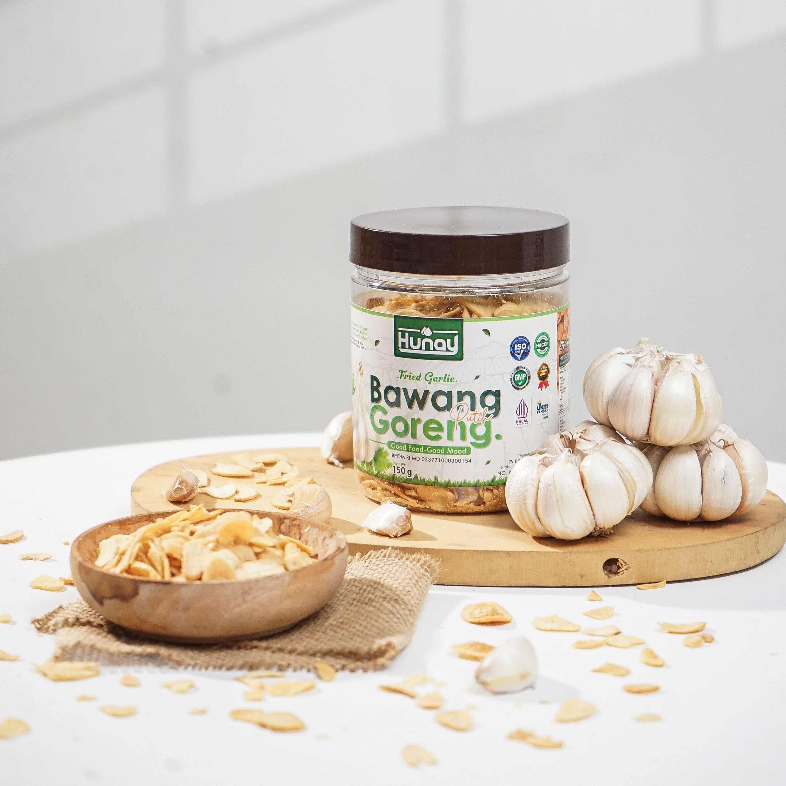 Hunay Fried Garlic in a 150g jar is a delicious and practical food topping made from real garlic, thinly sliced and fried to golden crispness without any preservatives. It offers an irresistible crunch and rich aroma that enhances any dish.