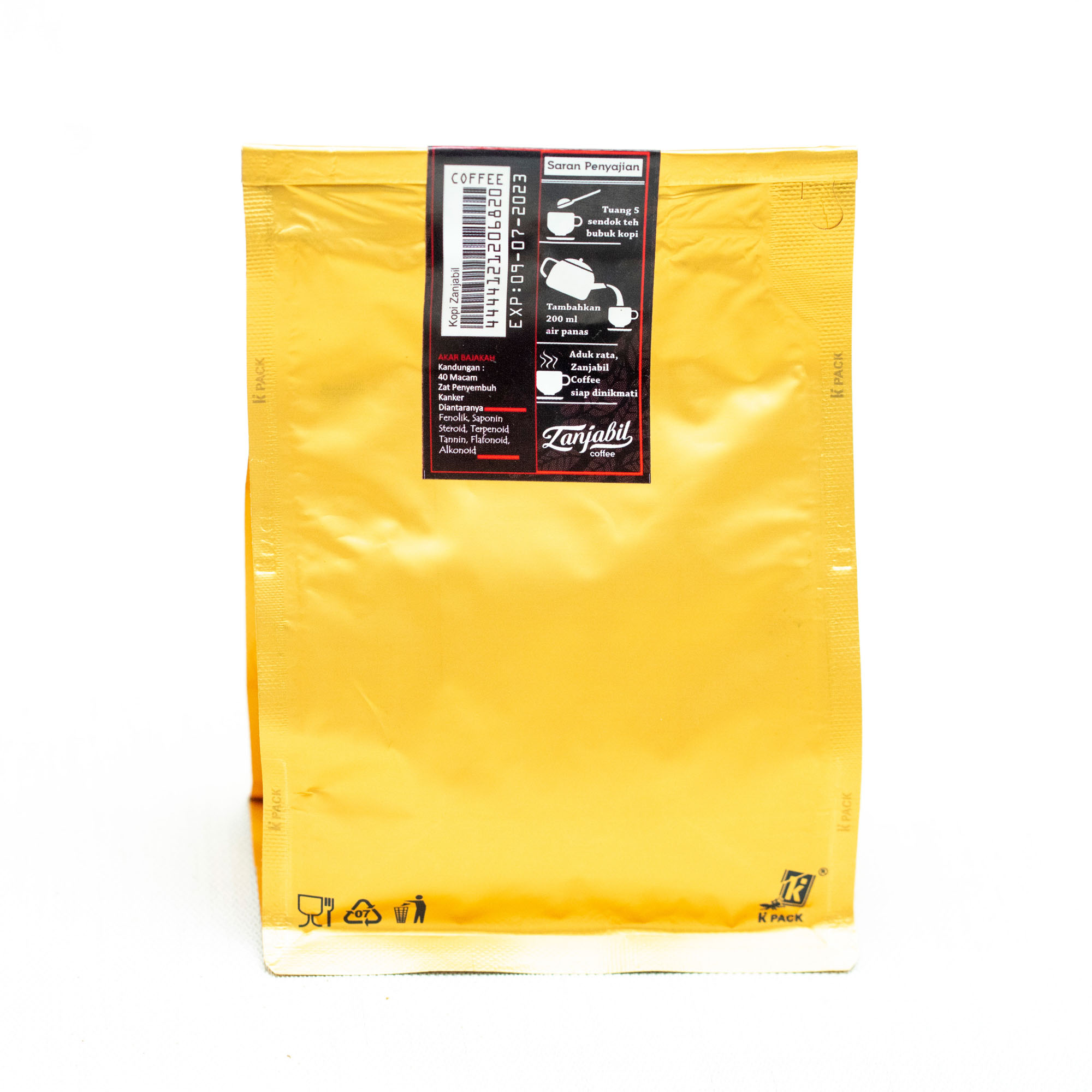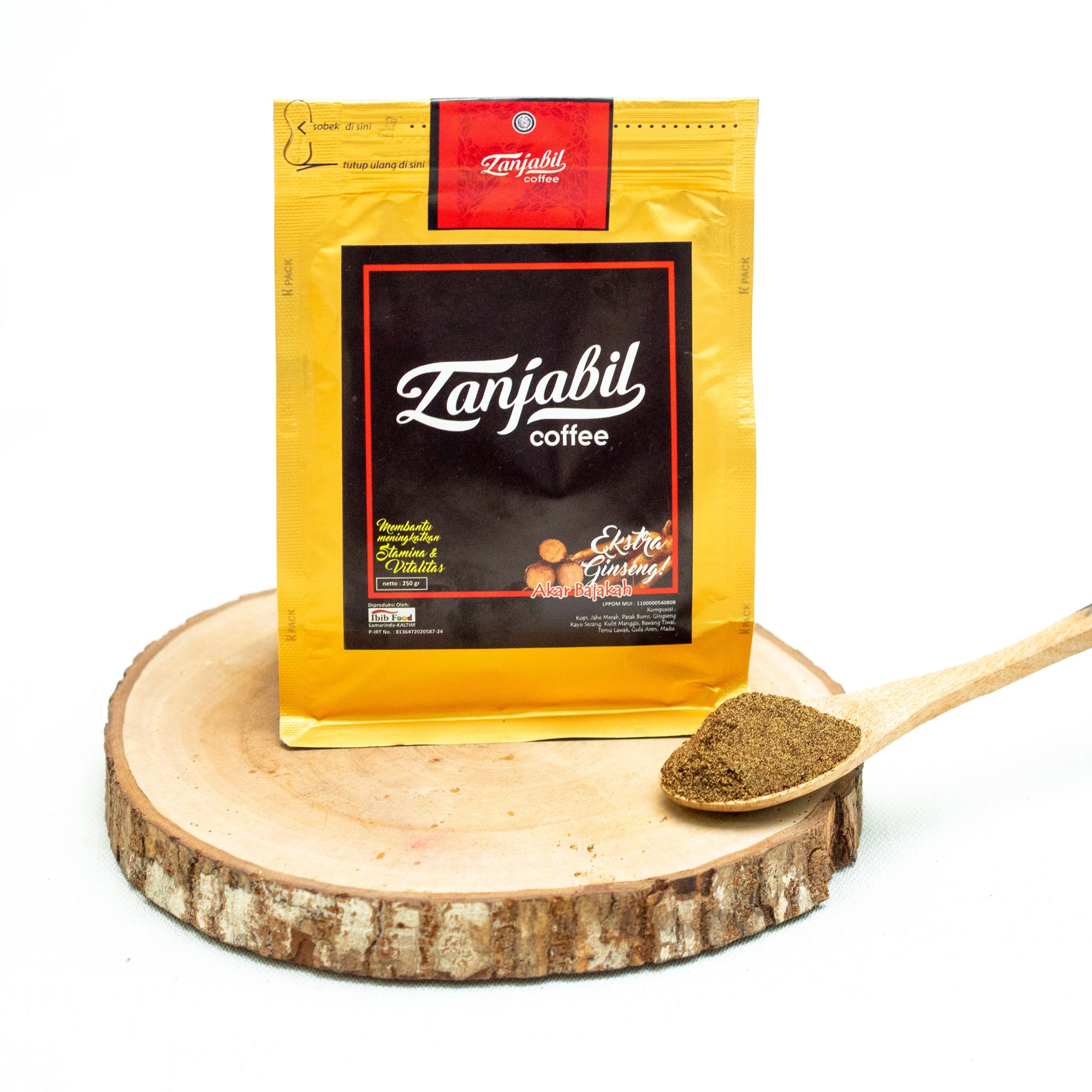 Material Content: Bahan yang digunakan adalah kopi, Jahe Merah, bawang dayak/tiwai, Akar bajakah, Tongkat ali, Meniran, kayu secang dan lainnya