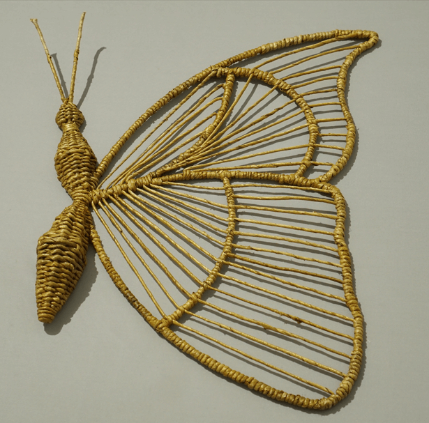 Banana bark butterfly wall decor with an iron frame