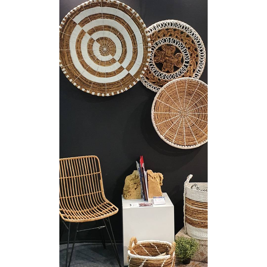 There is a story behind every craft. Woven from banana fiber which is abundant in Indonesia, this wall decoration seems to convey the beauty of a tropical country that is overflowing with rich traditions. The circles and lines depict the sun's rays that warm the soul. The center invites focus.