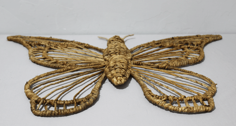 Banana bark butterfly wall decor with an iron frame