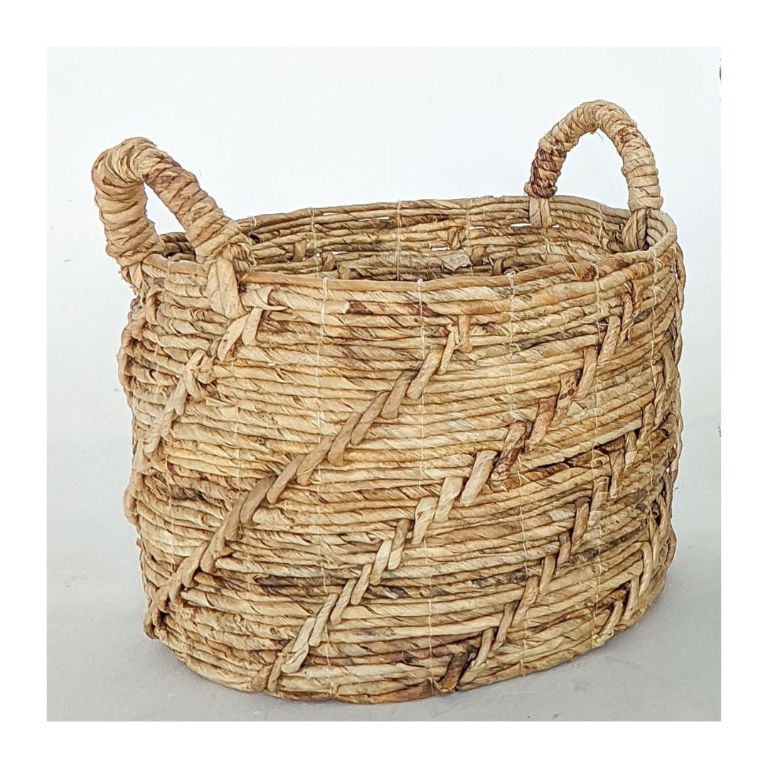Weaving has been part of indigenous skills our ancestors had since centuries ago. Baskets, the daily needed containers, are commonly made using this technique. An aspiration to preserve the traditional knowledge has driven PT Indo Risakti to rebirth Indonesian cultural heritage and take them to the international level. Banana bark f iber is woven carefully to create exquisite basketries. Clothes, toys, even groceries are well kept in visually-pleasant containers. The natural colors would spread warmth and would go a long with any style. Black white accent and geometrical motifs are sometimes affixed, creating a sweet surprise.