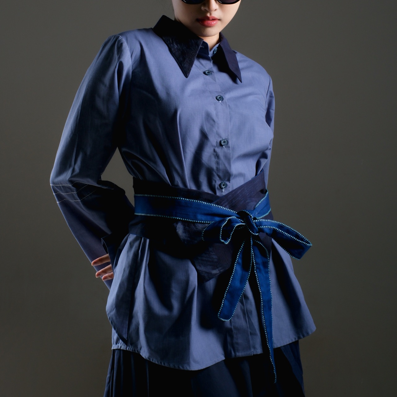 Uthana Shirt Smoke Combi Batik Cap Abstrak