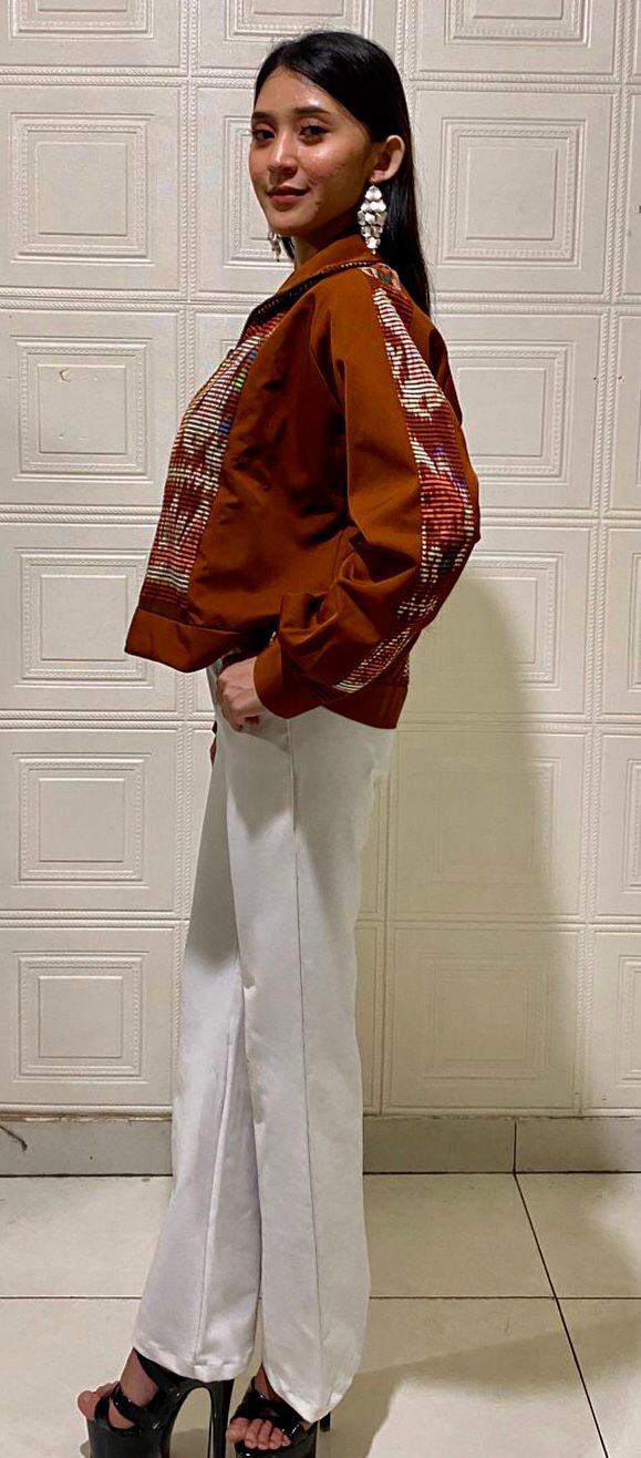 Jaket cual CROP bahan katun kombinasi tenun cual ATBM