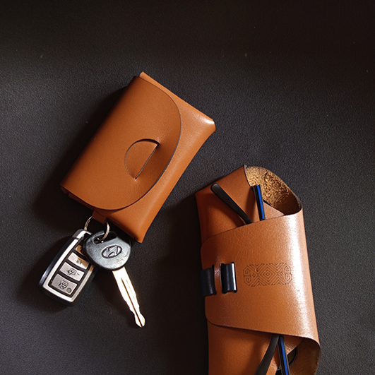 Stitchless key holder and driving licence wallet, crafted with slip n lock method, no adhesive, no metal part.