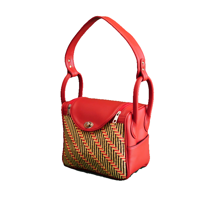 kombinasi kulit sintetis dengan anyaman rotan motif saluang murik atau ikan kecil yang mudik kehulu untuk menjemput rezeki