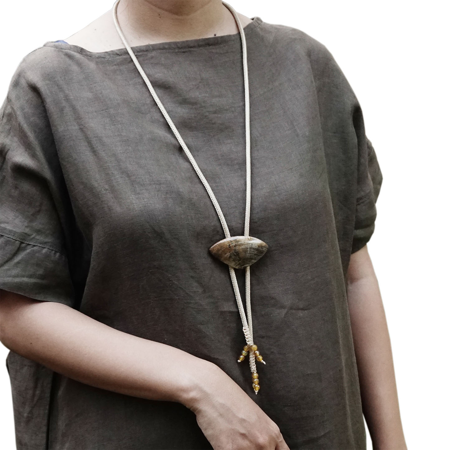 "Silla", kalung yang melambangkan perempuan karir yang dinamis tetapi tetap terlihat cantik dan elegan . Dibuat oleh Artisan Joglo Ayu Tenan secara handmade.