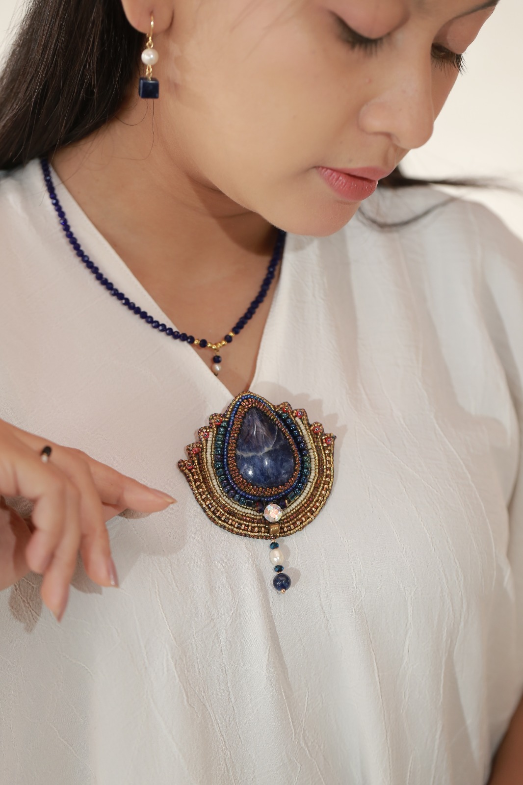 CARRYING the shade of ocean blue, Biru is part of the Earth color trend developed by Joglo Ayu Tenan. This accessory set reveals the grace of sodalite, a mineral that naturally shines out the exotic hue of deep seas. The crafters of natural stones have ingeniously transformed this rare material into timeless neo-classic accessories. With Biru, be ready be exclusively astonishing.