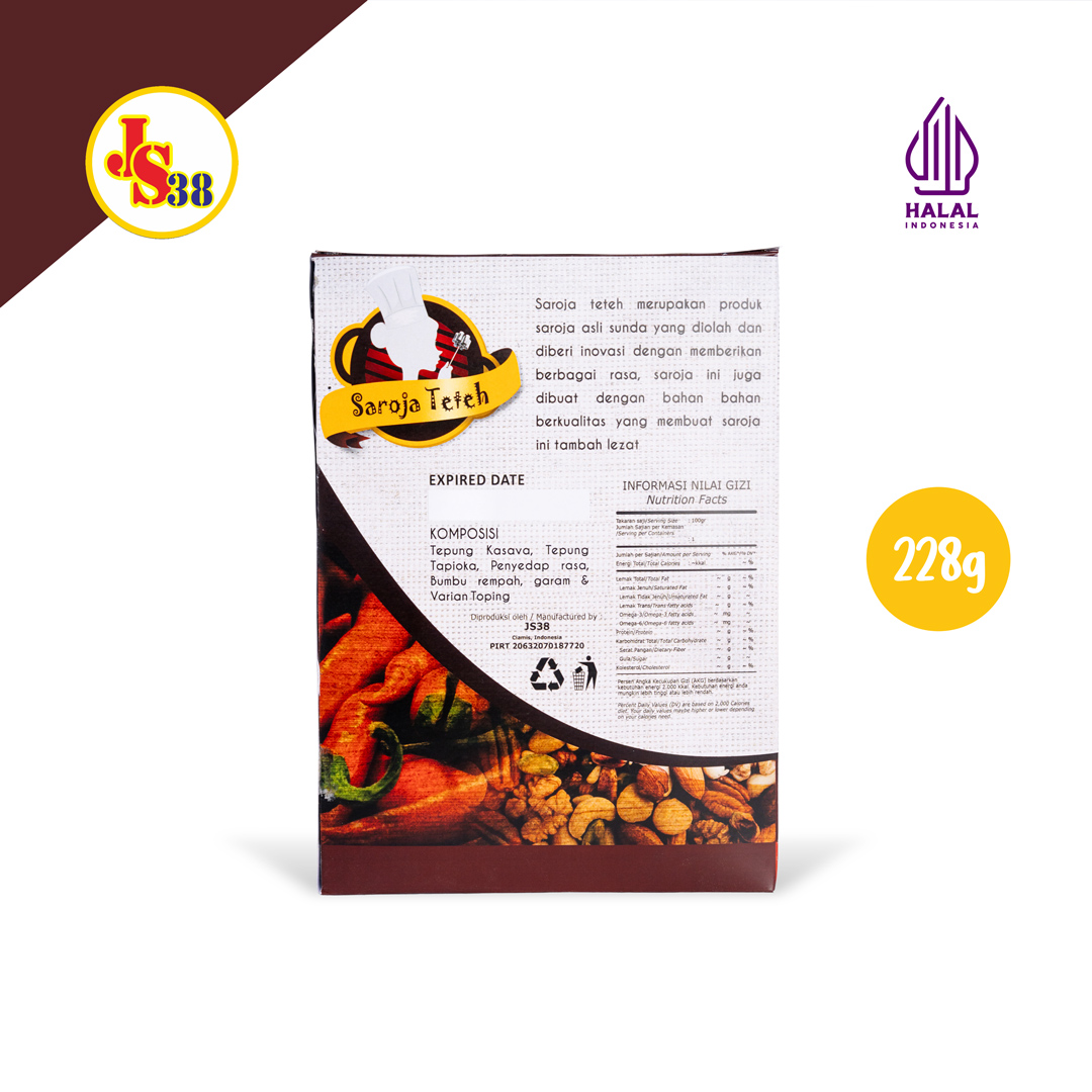 JS38 – Seroja Teteh & Sale Akang is a traditional snack MSME from Tasikmalaya and Ciamis that revives local delicacies through innovative toppings and attractive presentation. Founded by the creative group JS38, the brand offers three main variants: Seroja Teteh (flour- and peanut-based cake), Sale Akang Bulat (round banana chips), and Sale Pisang Jari (finger-shaped banana chips). All are made from selected ingredients such as premium bananas, wheat/rice flour, and signature local spices. Authentic flavors are combined with modern toppings, hygienic processing, and aesthetic packaging—supporting the preservation of culinary heritage while expanding its reach through e-commerce and QRIS payment systems.