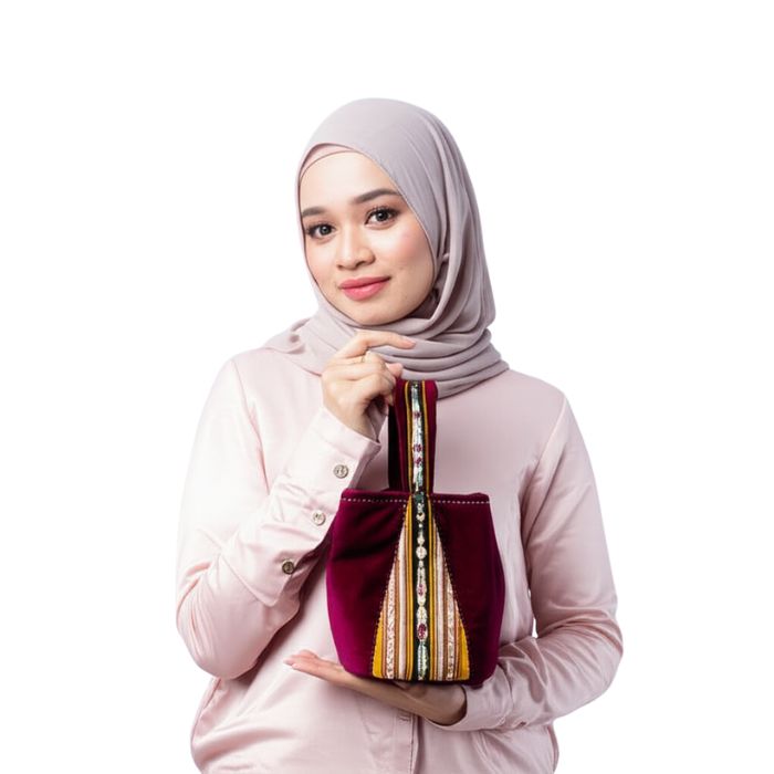 Inspired by the elegant handbags of colonial-era aristocrats, who adorned their finest attire with embroidered and sequined pouches, this design offers a modern silhouette. Kabeta proudly features Tanimbar woven fabric, preserving Maluku's rich cultural art, and is beautifully accented with exquisite pearls from Dobo's pristine Maluku waters. This contemporary, functional bag is perfect for the stylish, youthful individual.