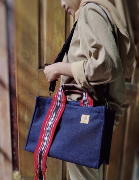 The design came from the Brave Young Heroin women named Martha Cristina Tiahahu. Her look with head band, her strength, and power help Kabeta to create the collection as simple, bold but stil in style with various color tradisional Woven Textile used on bags handle.