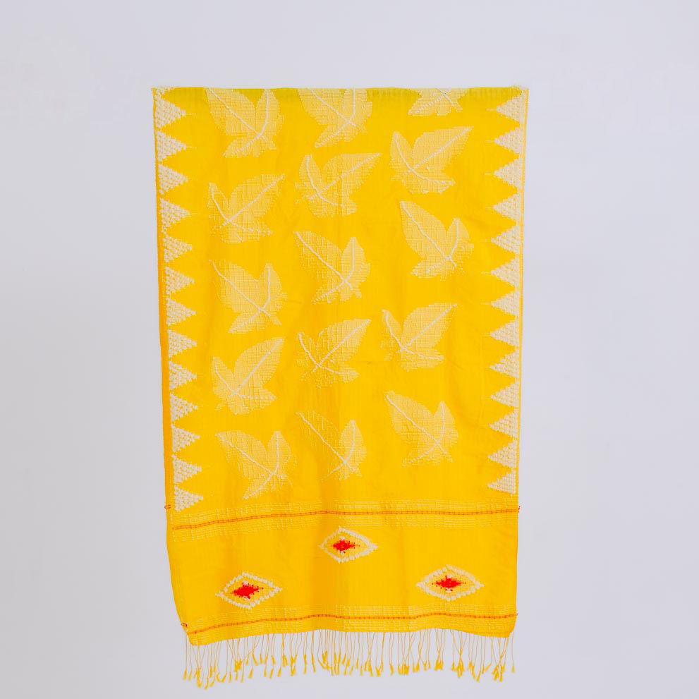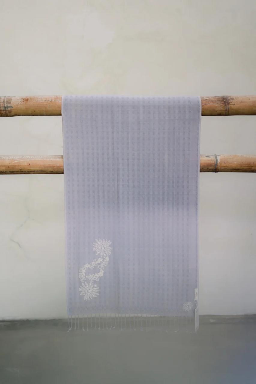Pattern Meaning: A sprinkling of tuberose flowers and chrysanthemums at each end of the scarf