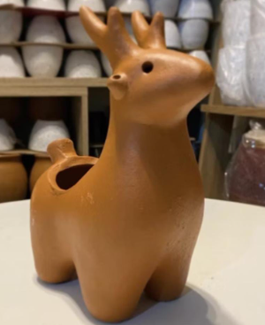 A handmade plant pot with unique details in the shape of a cute deer character — making your plant look even more adorable and charming.