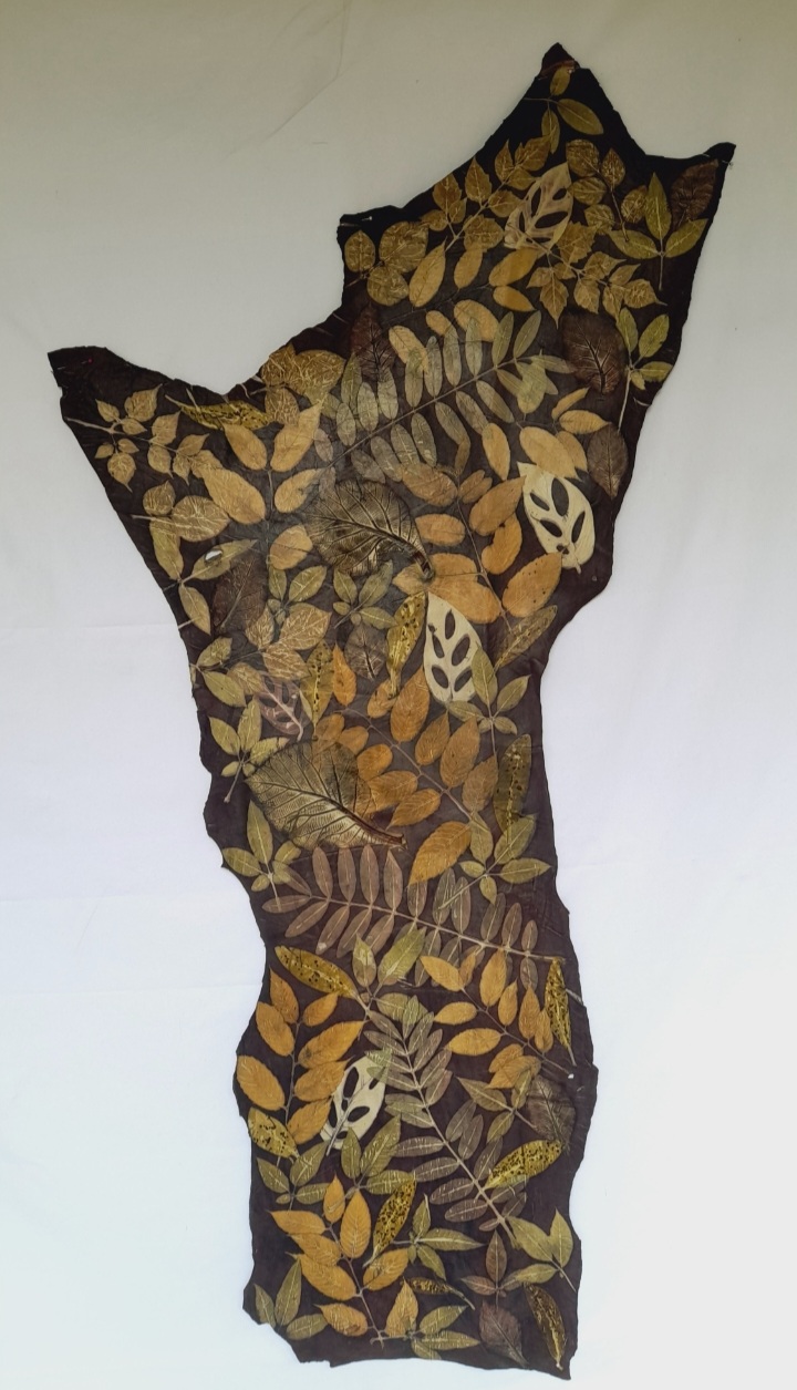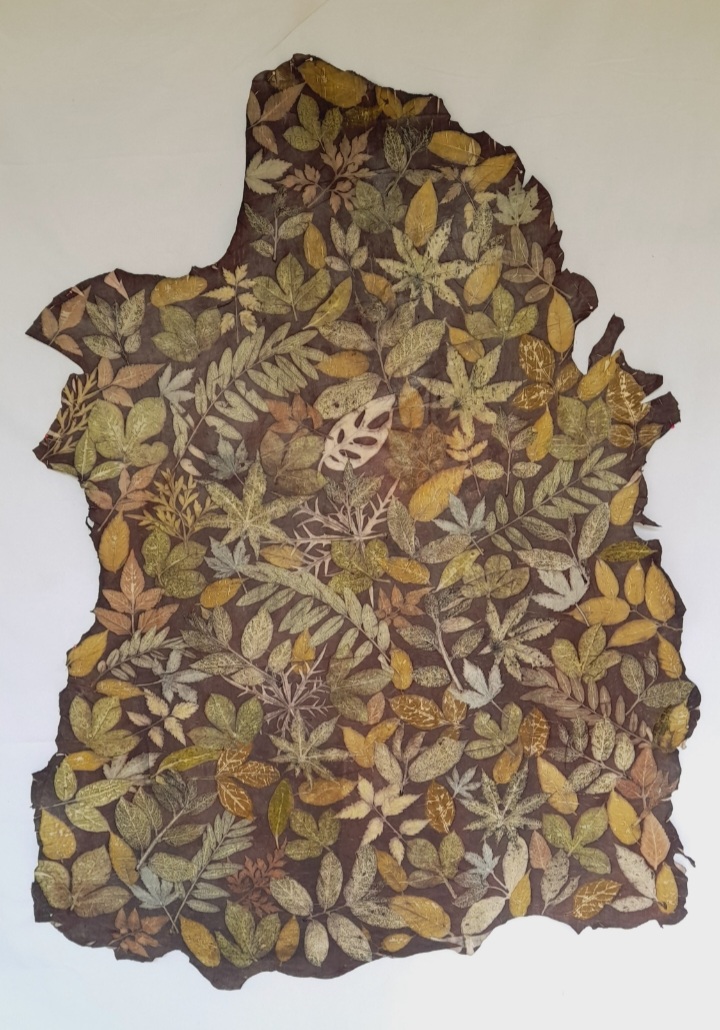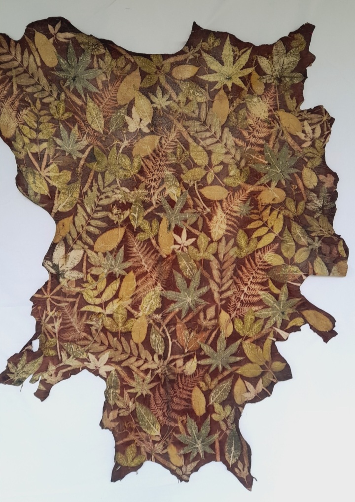 Ecoprint Sheet Leather Made from Cow, Goat and Sheep skins. Ecoprint motifs are leaf and flower motifs. High Natural Dyes, Secang, Jolawe, and Manjakani. This leather is the basic material for bags, shoes, suitcases and other handicrafts The price of 100,000 is the price per foot (30cmX30cm) Each sheet is always a different pattern, color and size of the feet. The size of each sheet between 6 - 12 feet.