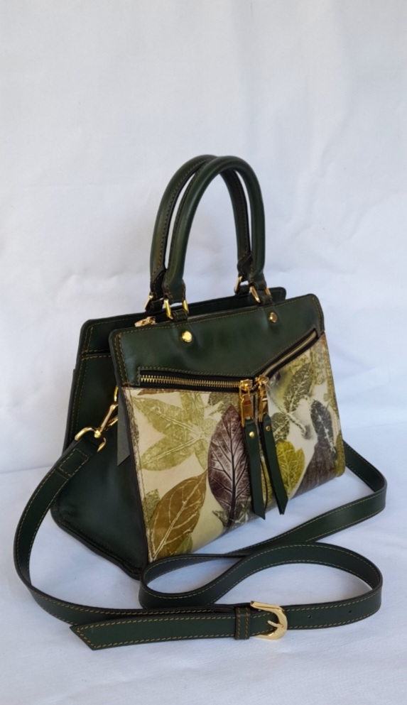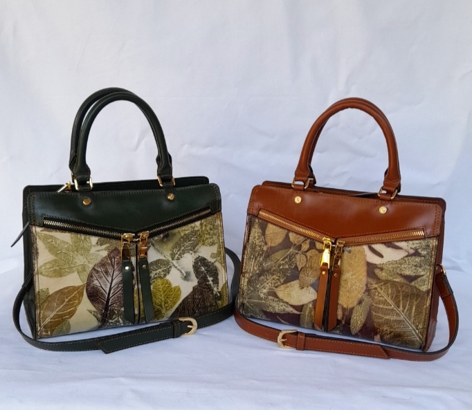 Best Quality Women's Bag and Limited Edition. Each product has a different motif and uses natural dyes. Made from Ecoprint Sheepskin and Plain Cow Leather. There are 2 choices of Plain Leather, namely Dark Green and Brown. Size 28X13X21cm. Shoulder strap, length can be adjusted. Using high quality materials, not easy to fade, durable, waterproof and easy to clean. This Ecoprint Women's Bag gives Beauty when the Bag is used.