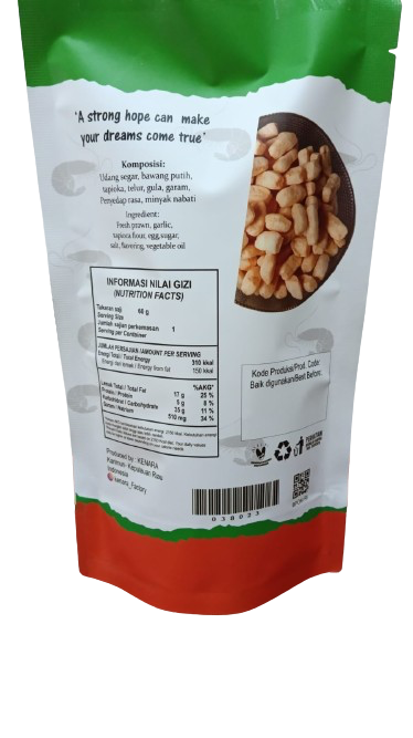 Material Content: Udang Segar, Tepung Tapioka, Gula, Garam, Bawang Putih, Telur, dan MSG