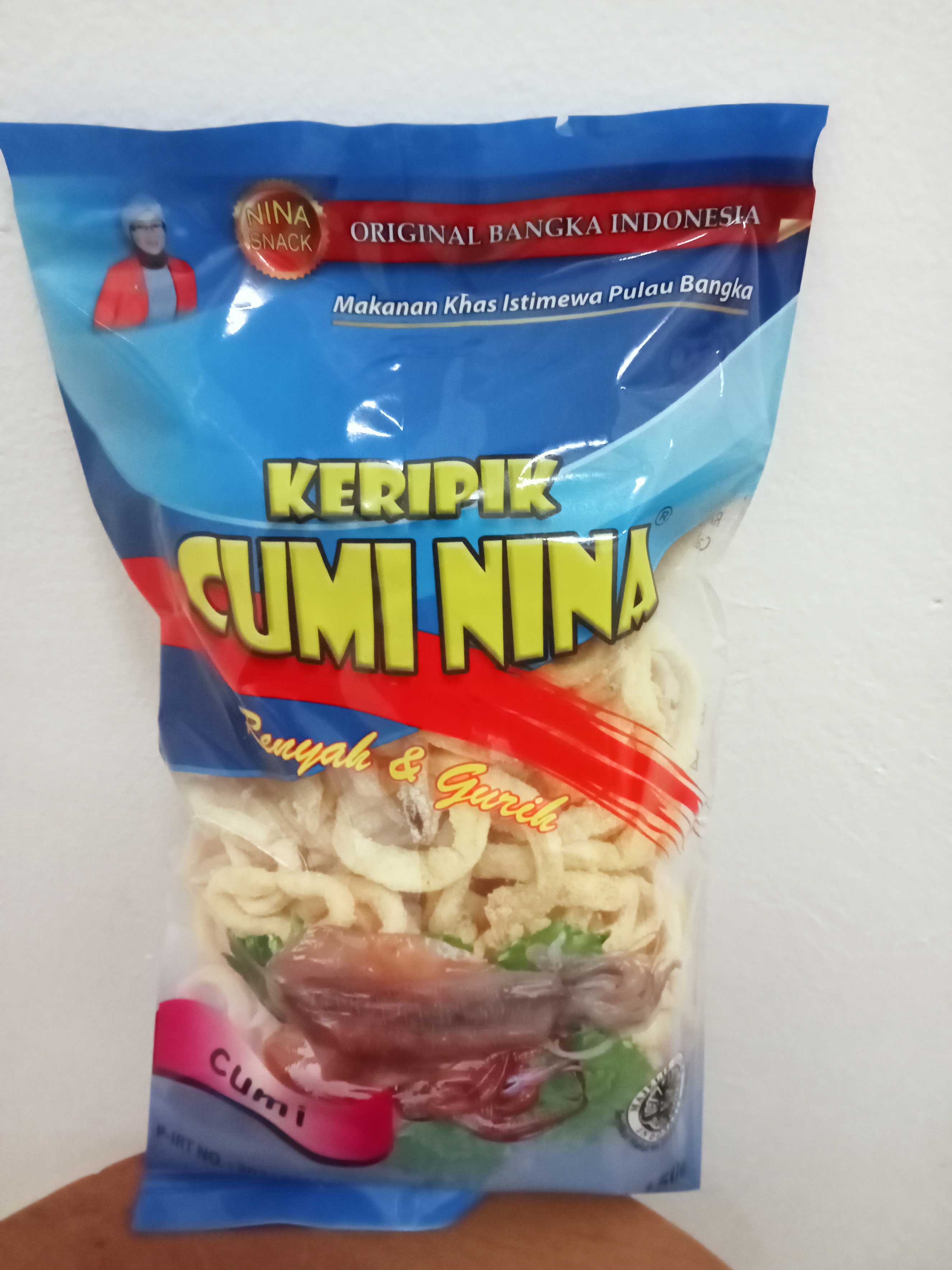 Keripik Cumi Nina is one of the home industries in the Bangka Belitung islands that produces squid crisps. The process of making squid chips was inspired by the flour-fried squid that is often found in restaurants. And we innovate it into a snack/snack of squid chips. Squid chips are made with fresh squid directly from Bangka Belitung fishermen. Established 10 years ago, Keripik Cumi Nina now has ten employees. Products of Keripik Cumi Nina are suitable for consumption as side dishes, casual friends, snacks while on recreation and others.