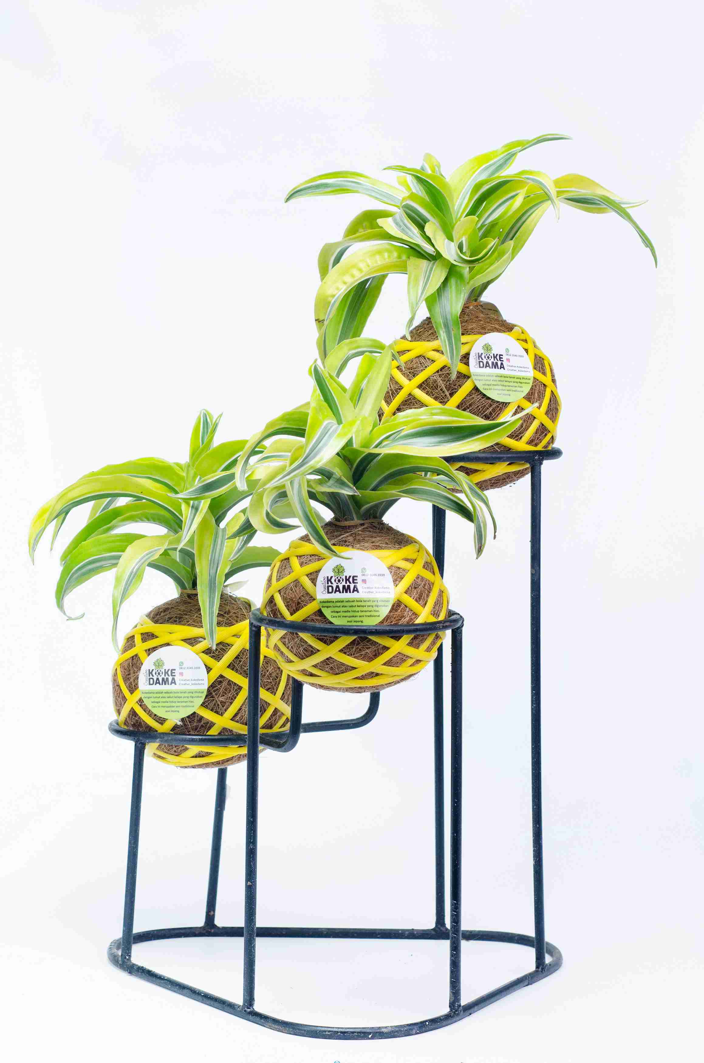 Material Type: Tanaman hias yang medianya dibentuk bola dan dibalut dengan serabut kelapa (teknik kokedama).