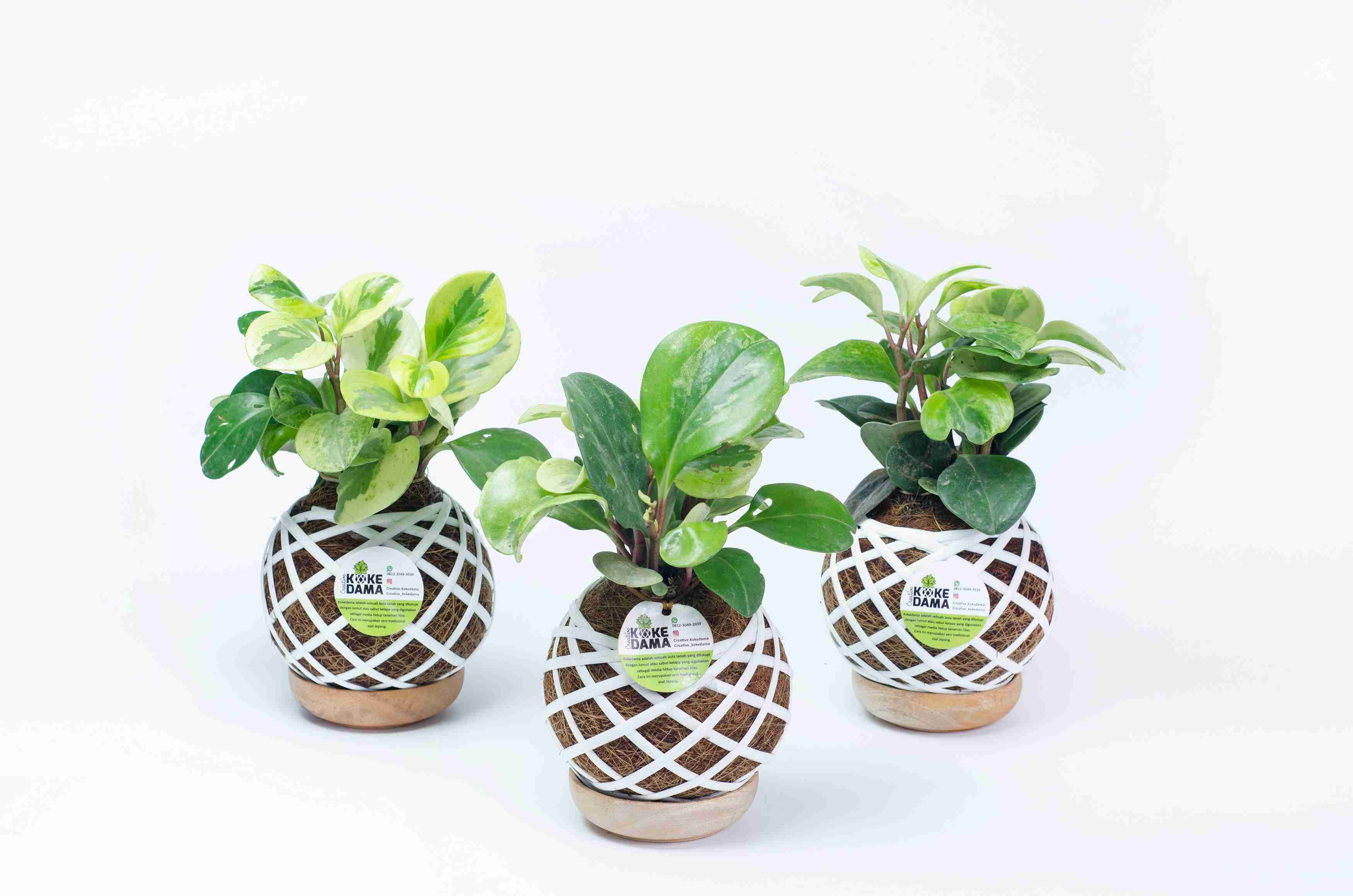 Material Type: Tanaman hias yang medianya dibentuk bola dan dibalut dengan serabut kelapa (teknik kokedama)