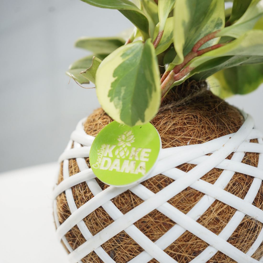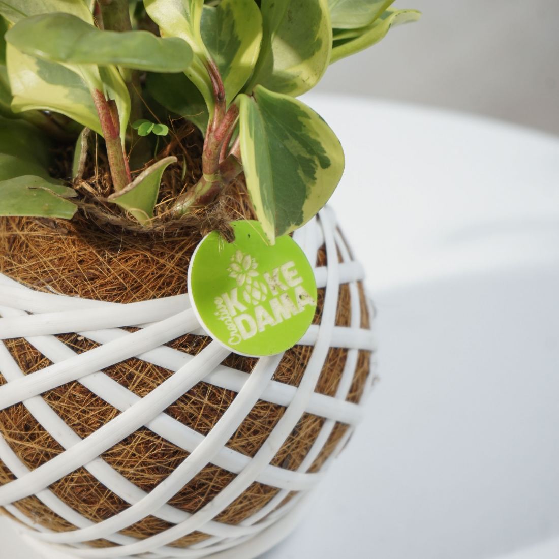 Kokedama Peperomia Putih (Peperomia obtusifolia 'Variegata')