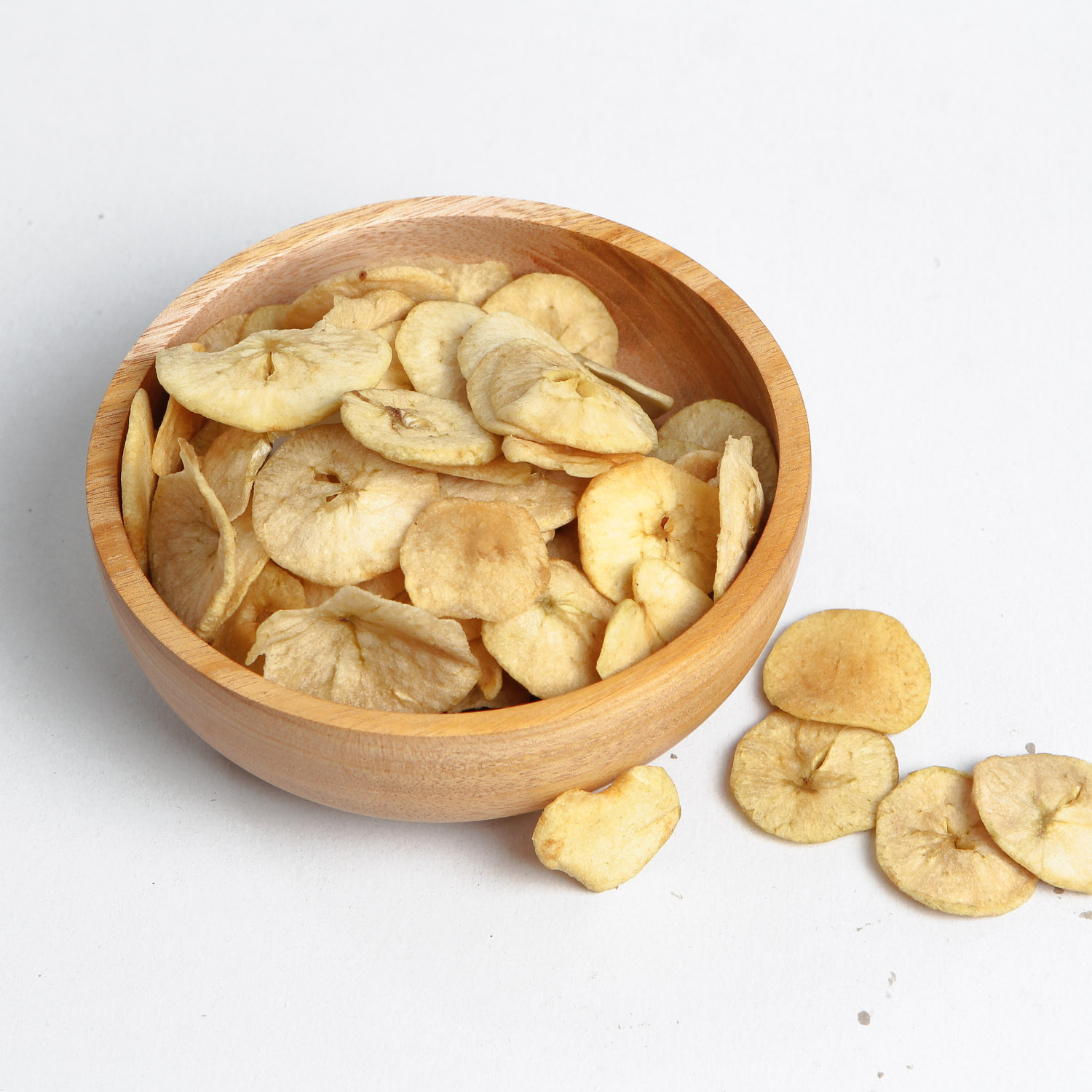 chips made from processed apples that are fried in a special way, usually using a vacuum fryer.