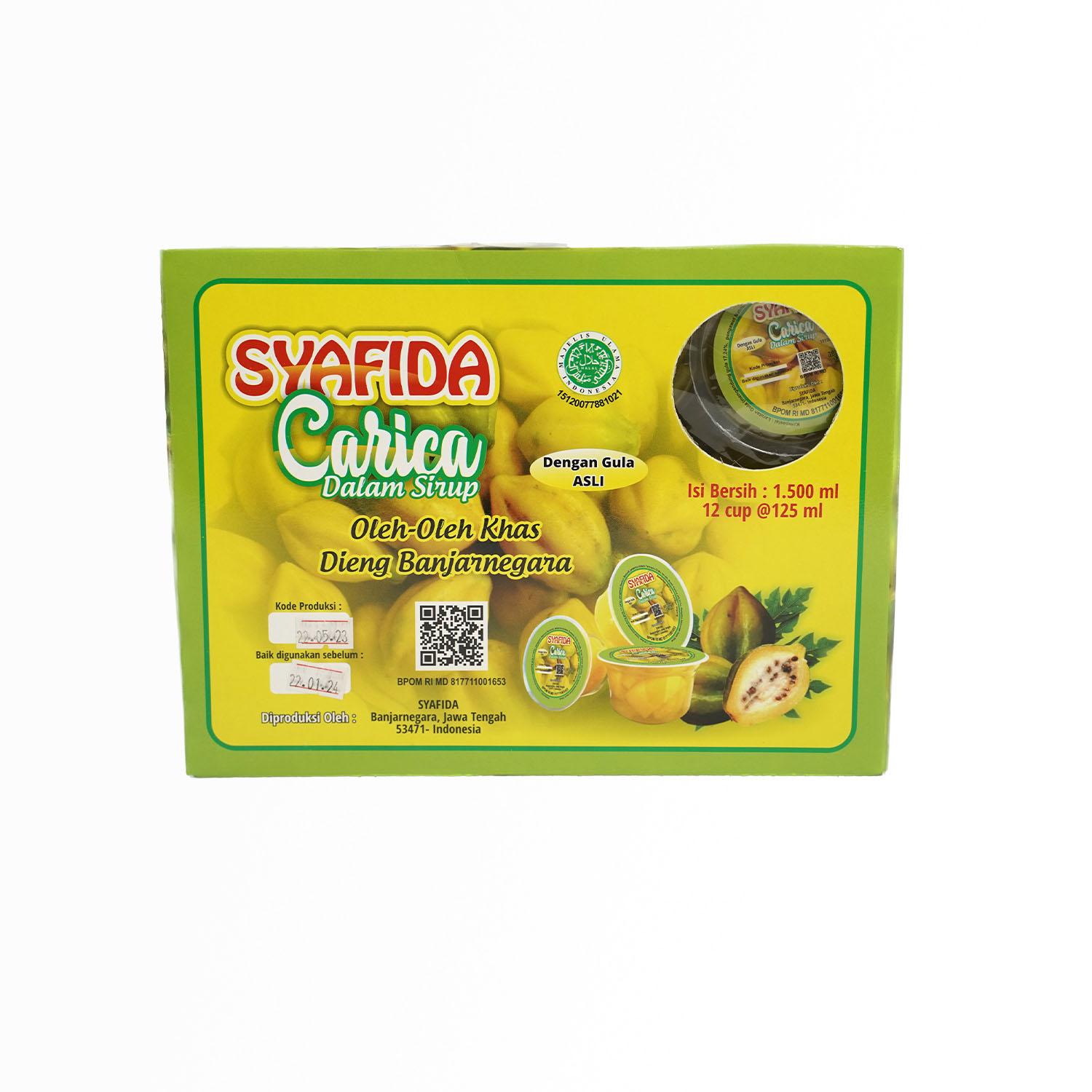 Carica Syafida is a candied carica in syrup made from carica fruit that only grows in the Dieng Plateau, Banjarnegara, Central Java, Indonesia. Syafida Carica is made from: