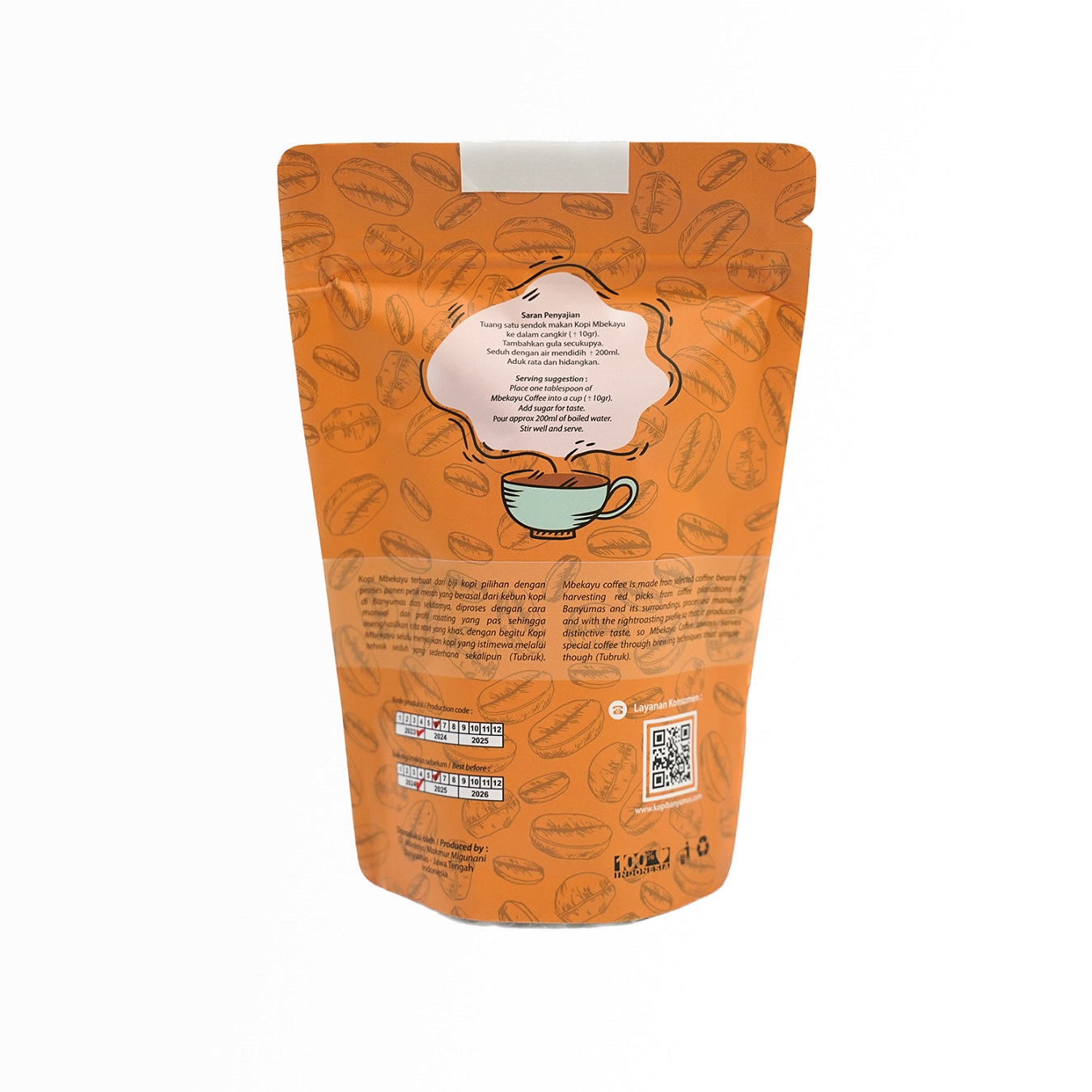 Mbekayu coffee was first produced in 2017 in Banyumas. Mbekayu coffee is made from selected coffee beans, with a red picking harvest process, originating from coffee plantations in Banyumas and its surroundings. It is processed manually and with the right roasting profile to produce a distinctive taste, so Mbekayu Coffee always serves special coffee through special techniques even a simple brew