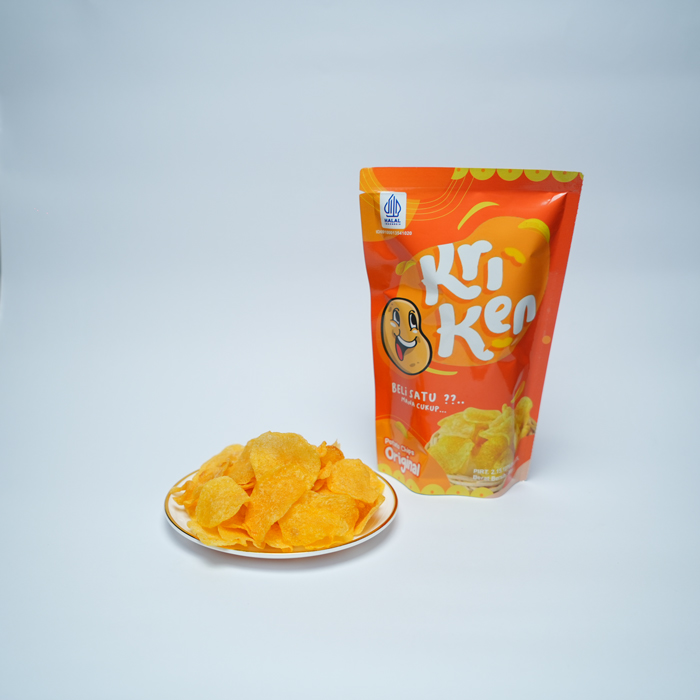 "Keripik Kentang 'KRIKEN' takes its name from the local wisdom of North Sumatra, specifically from the Karo language, which means 'FINISH'. It is processed and crafted with a distinctive Indonesian flavor that makes it irresistibly addictive. Founded at the end of 2019, it is the perfect snack option to accompany meals or serve as a side dish for the beloved family. It’s ideal for relaxing moments, traveling, Umrah, and also makes a great souvenir from Medan."