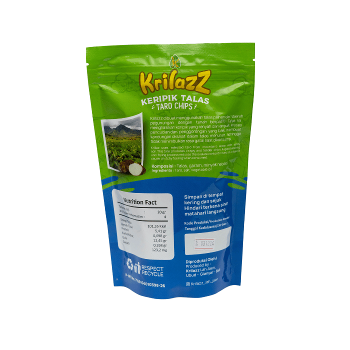 KRILAZZ is a business engaged in the processing of taro. We started pioneering in early 2021. We have a vision to process local plantation products by presenting snacks with better choices. Our first product is taro chips which are processed without the use of flavor enhancers, artificial coloring and preservatives. In the future, we have a mission to develop products, all of which are processed taro. Various exhibition opportunities both at the district and provincial levels from various agencies have made Krilazz increasingly recognized by the national market.